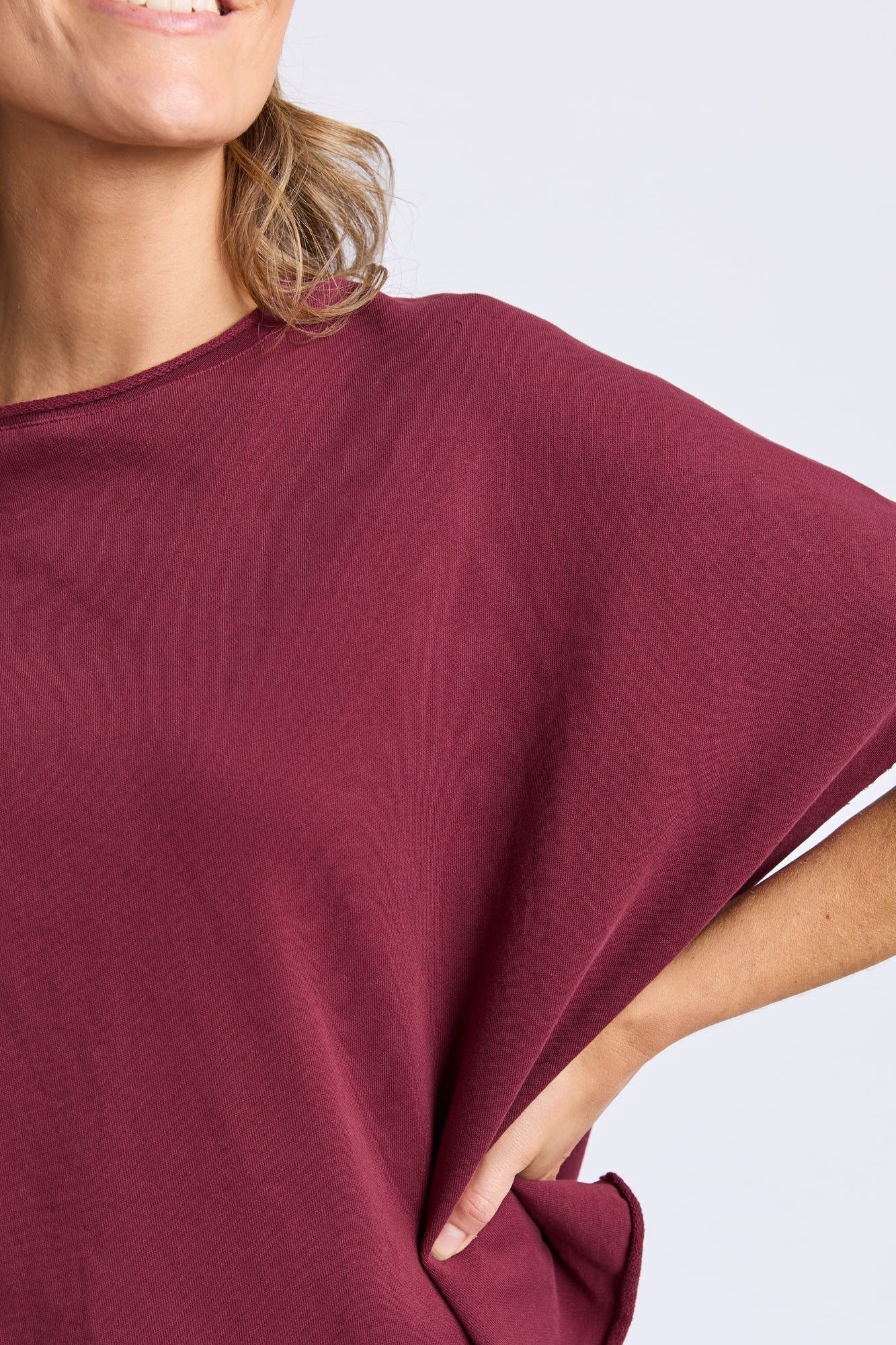 Slouchy and oh so comfy. The Gab sweat is cool and de-constructed. Featuring fun raw hems and a slight bat-wing arm. If you love a relaxed fit this is the fleece for you!