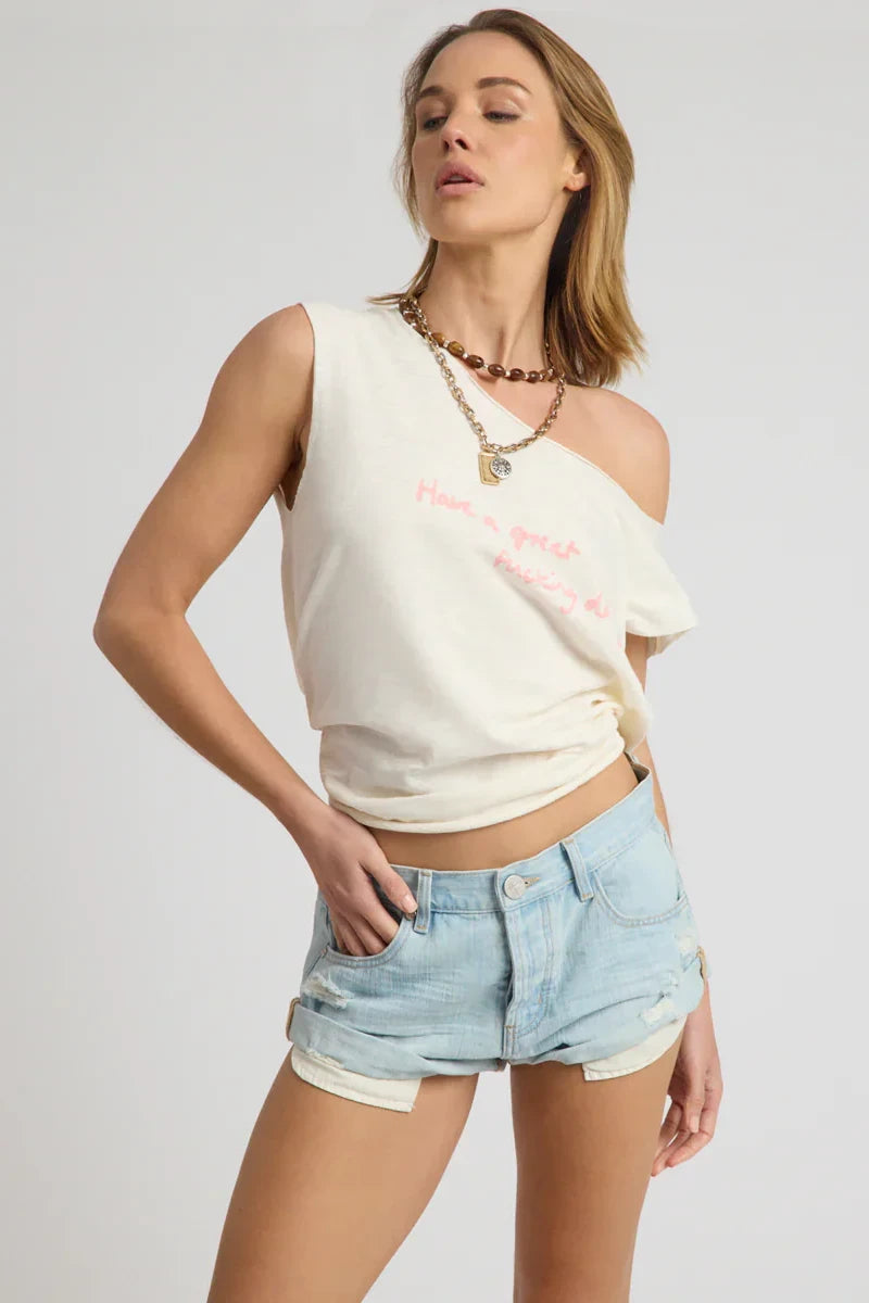 The WHITE HAVE A GREAT FUCKING DAY TANK is a bold, no-filter essential made to say exactly what you’re thinking. Cut from soft white cotton, this tank delivers effortless attitude with a clean, wearable silhouette. Finished with our signature Have a Great Fucking Day print, it’s the kind of piece that does all the talking—easy, cheeky, and unapologetically One Teaspoon. Style it with denim shorts for laid-back days, tuck it into denim jeans for everyday wear, or layer under jackets when the mood (or weather) shifts. WHITE is a crisp, clean cotton base that makes the bold graphic pop.