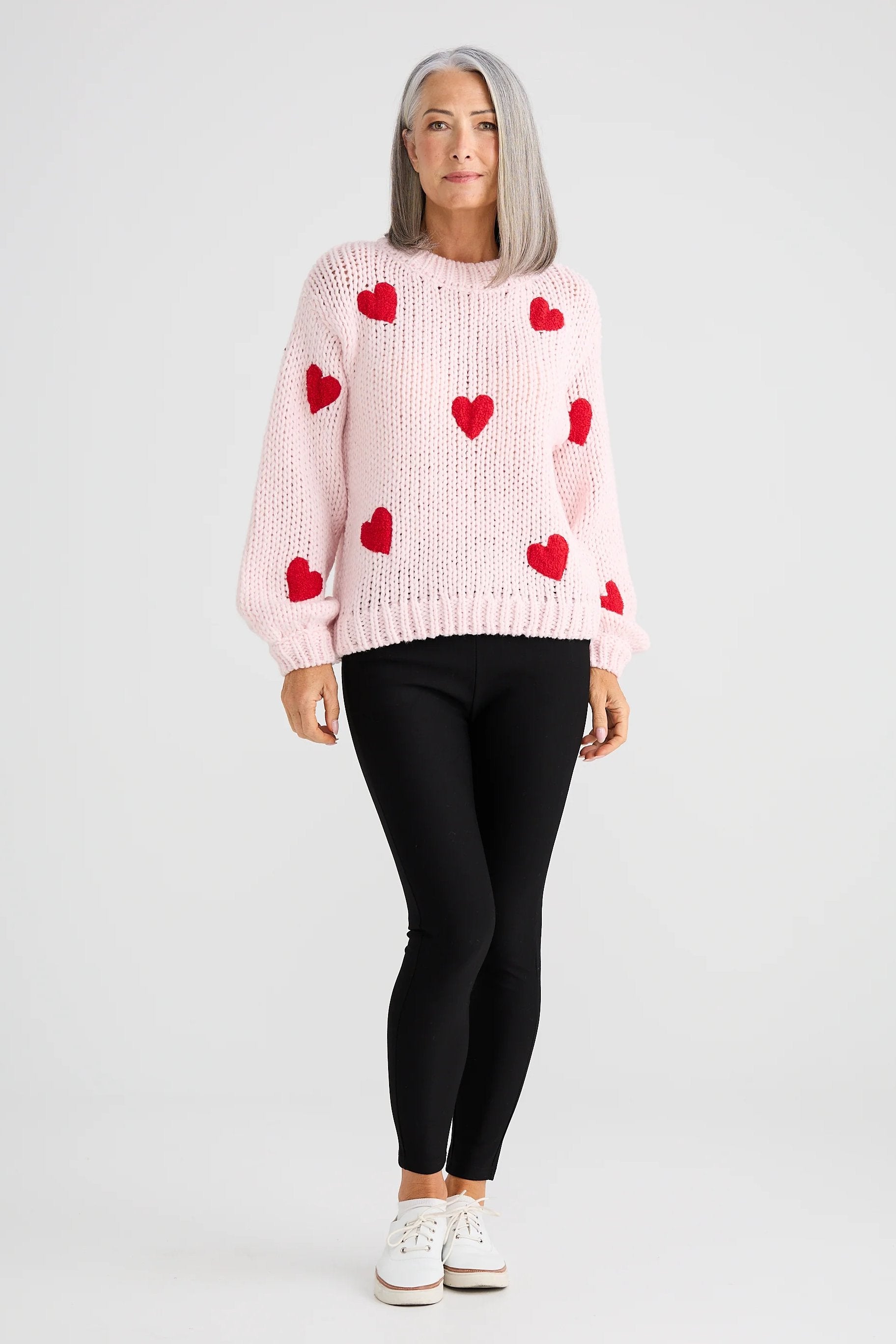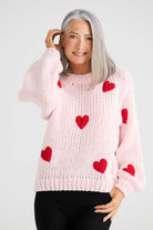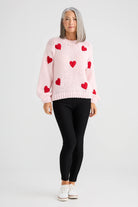 Wear your heart loud and proud with the Heart On My Sleeve Knit from Brave & True. This playful jumper is all about charm and cosiness, featuring scattered contrast hearts across a chunky, textured knit. With its relaxed fit and ribbed detailing at the neck, cuffs, and hem, it is designed for ultimate winter comfort without compromising on personality. Whether you go for classic cream with black hearts or bold red with white, this jumper is a feel-good piece that radiates warmth. Style it with jeans for casual catch-ups or tuck it into a midi skirt for a sweet weekend look.
