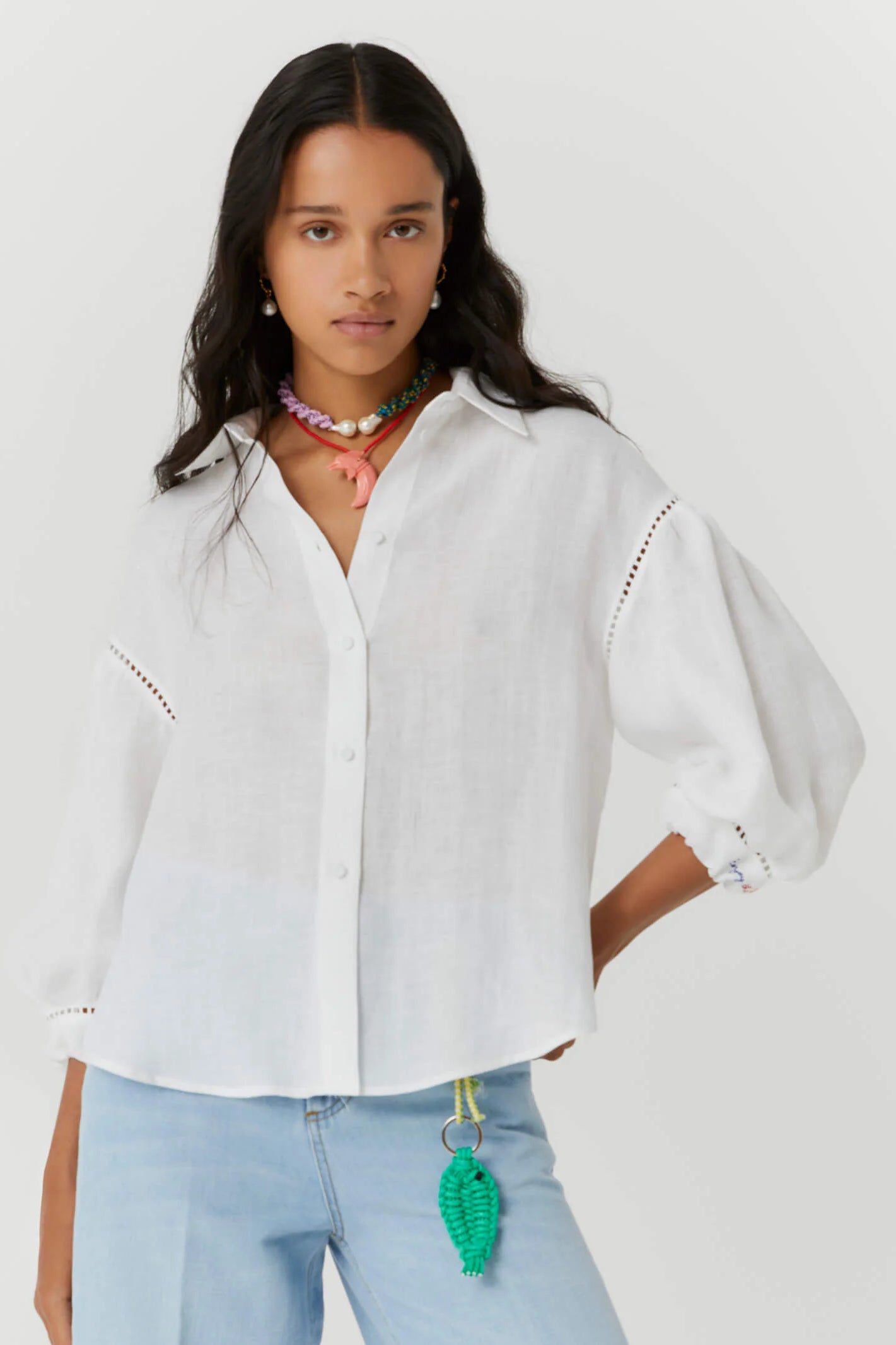 White Hemp Shirt with Crossed Back
