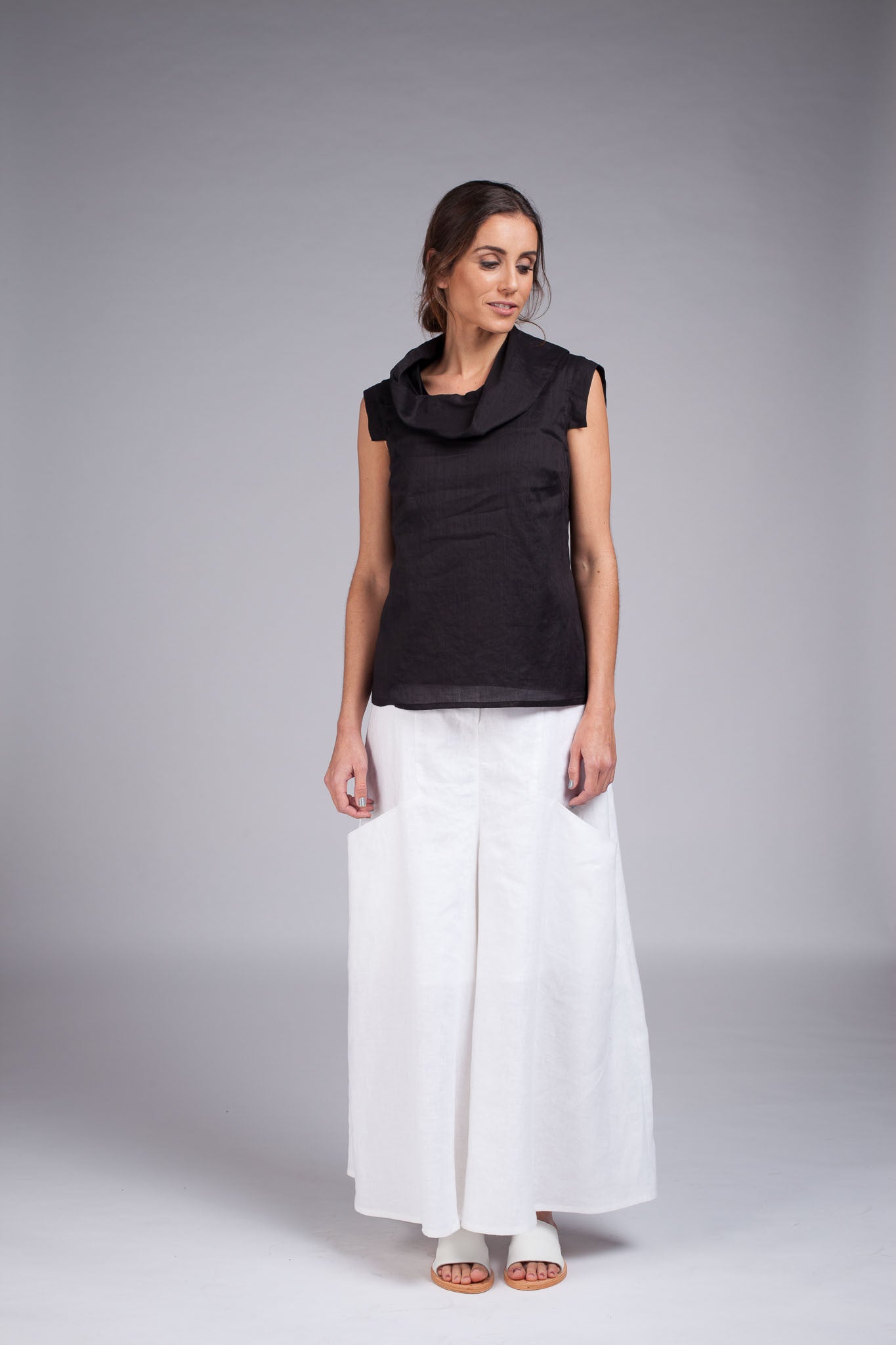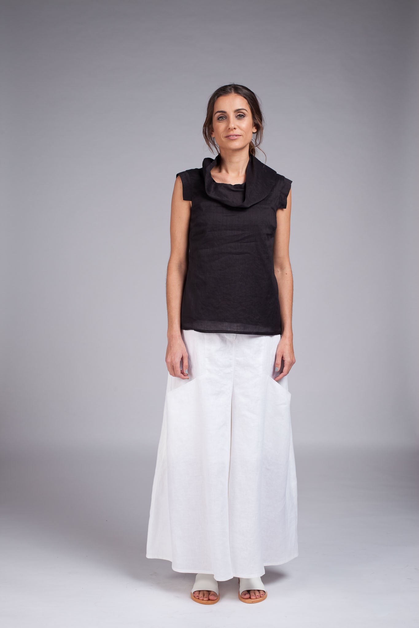 Kaze (Japanese for wind) is a lightweight top featuring a capped panel sleeve and a soft draped neckline. This top is fully lined with cotton voile.