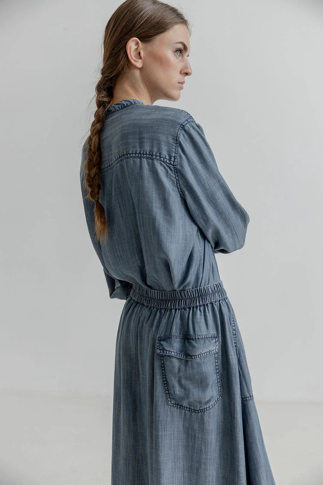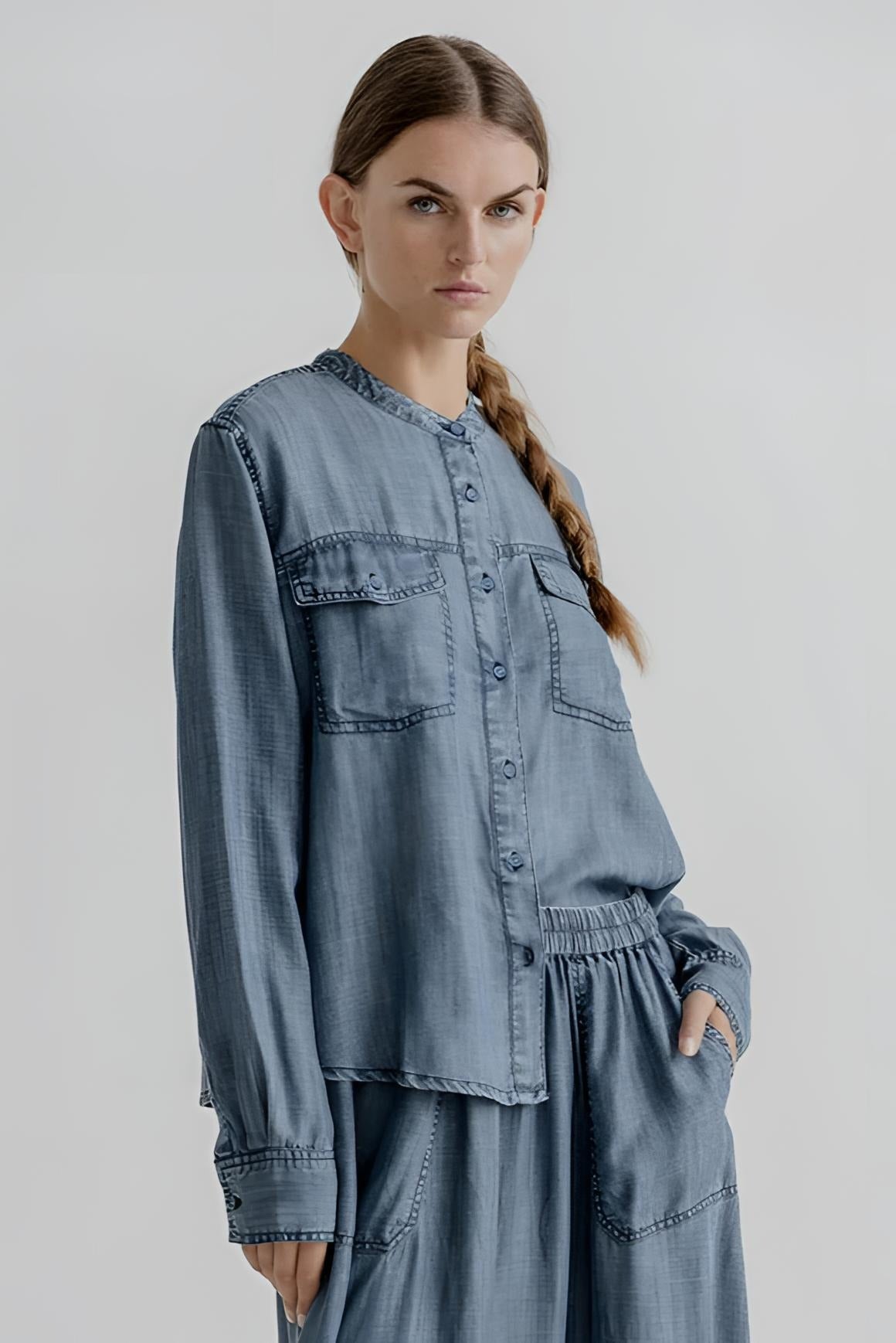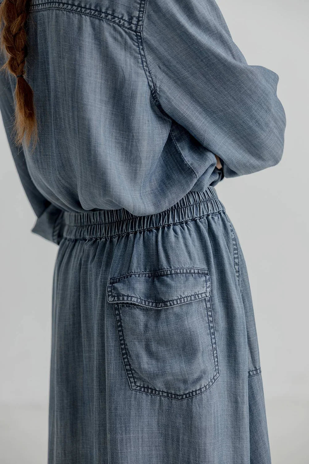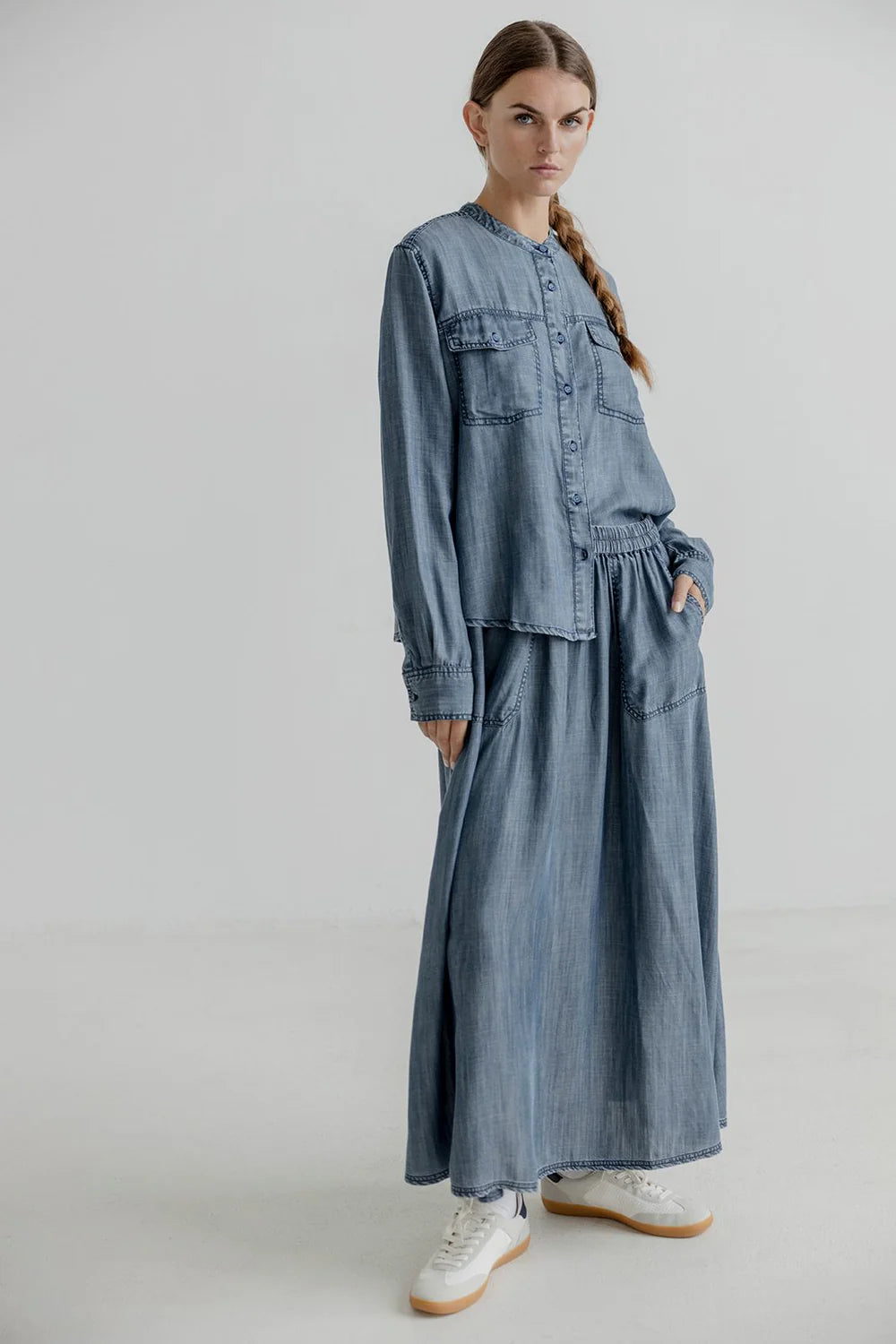 KIRSA is a super soft tencel denim shirt with two front pockets, buttoned closure and cuffs. The shirt can be paired with the matching Halle skirt.