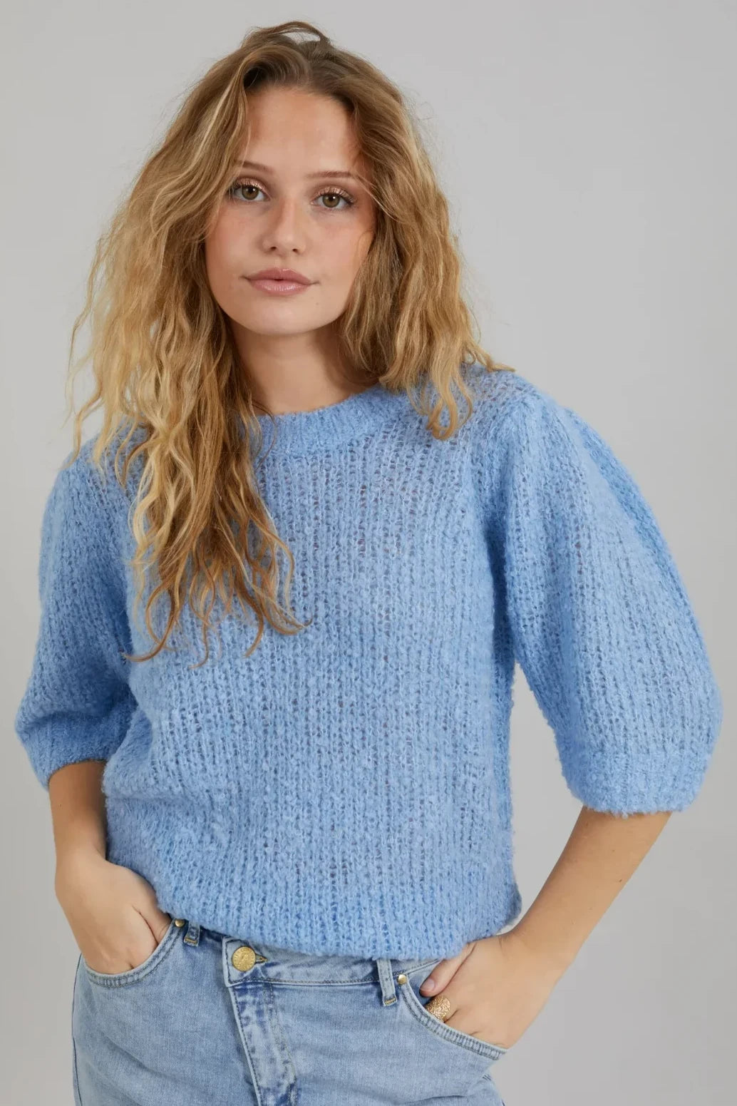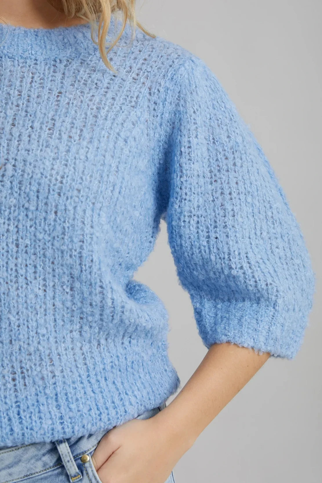 Knit with Puff Sleeves | Light Blue