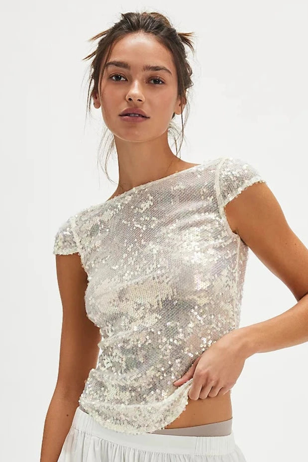 Shine on all night in this glittering tee from Intimately, featured in the most flattering shape with sequins all over for the perfect head-turning touch. Pair with a black mini and boots for an instant party look.