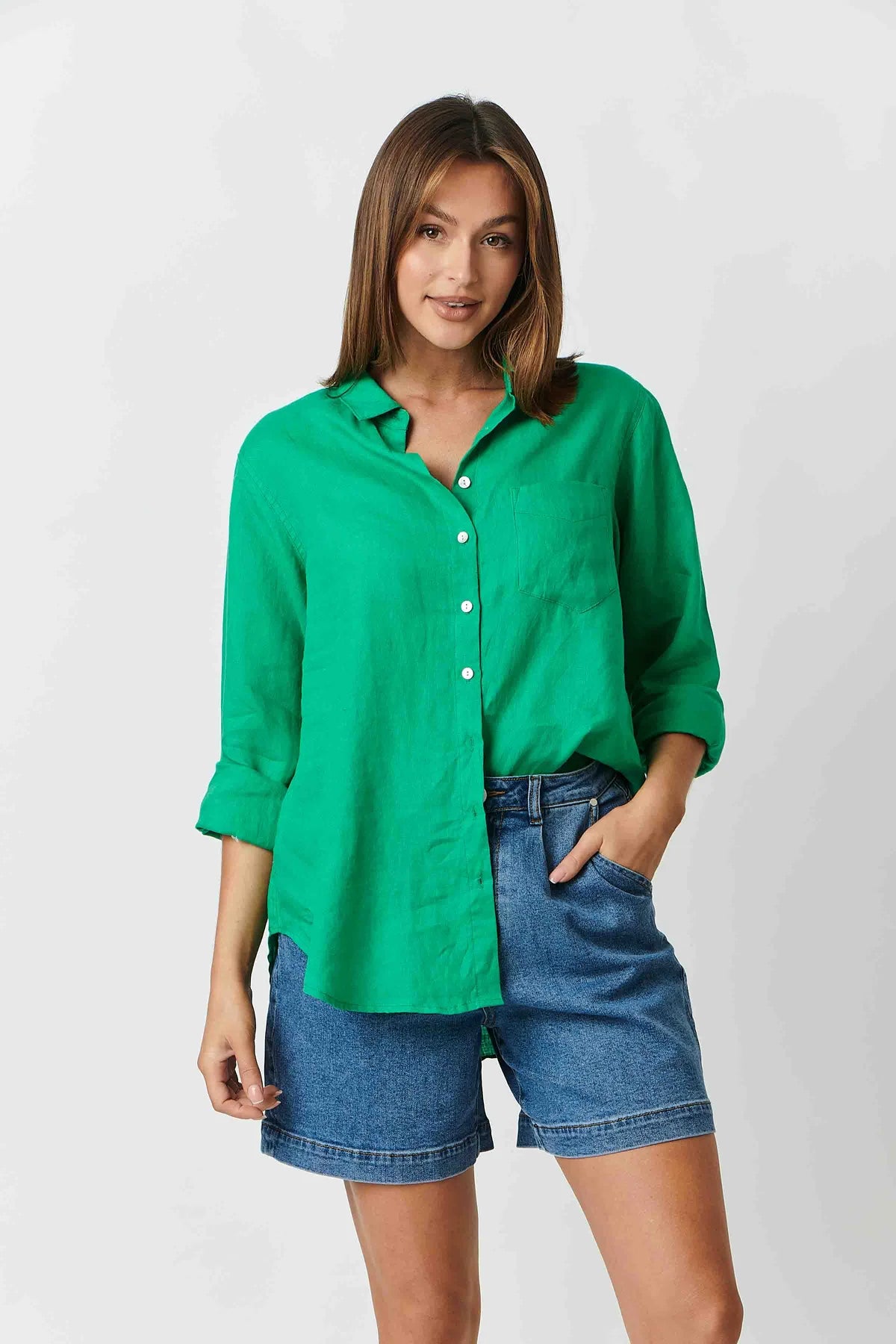 The Linen Boyfriend Shirts are your classic no brainers when it comes to easy dressing. It's a style every woman should have in their capsule. The long rollable sleeves and collar tick all boxes for a sun-safe option. Pair back with denim and and a sneaker and you cool and comfortable for the day ahead. Featured in an assortment of colours.