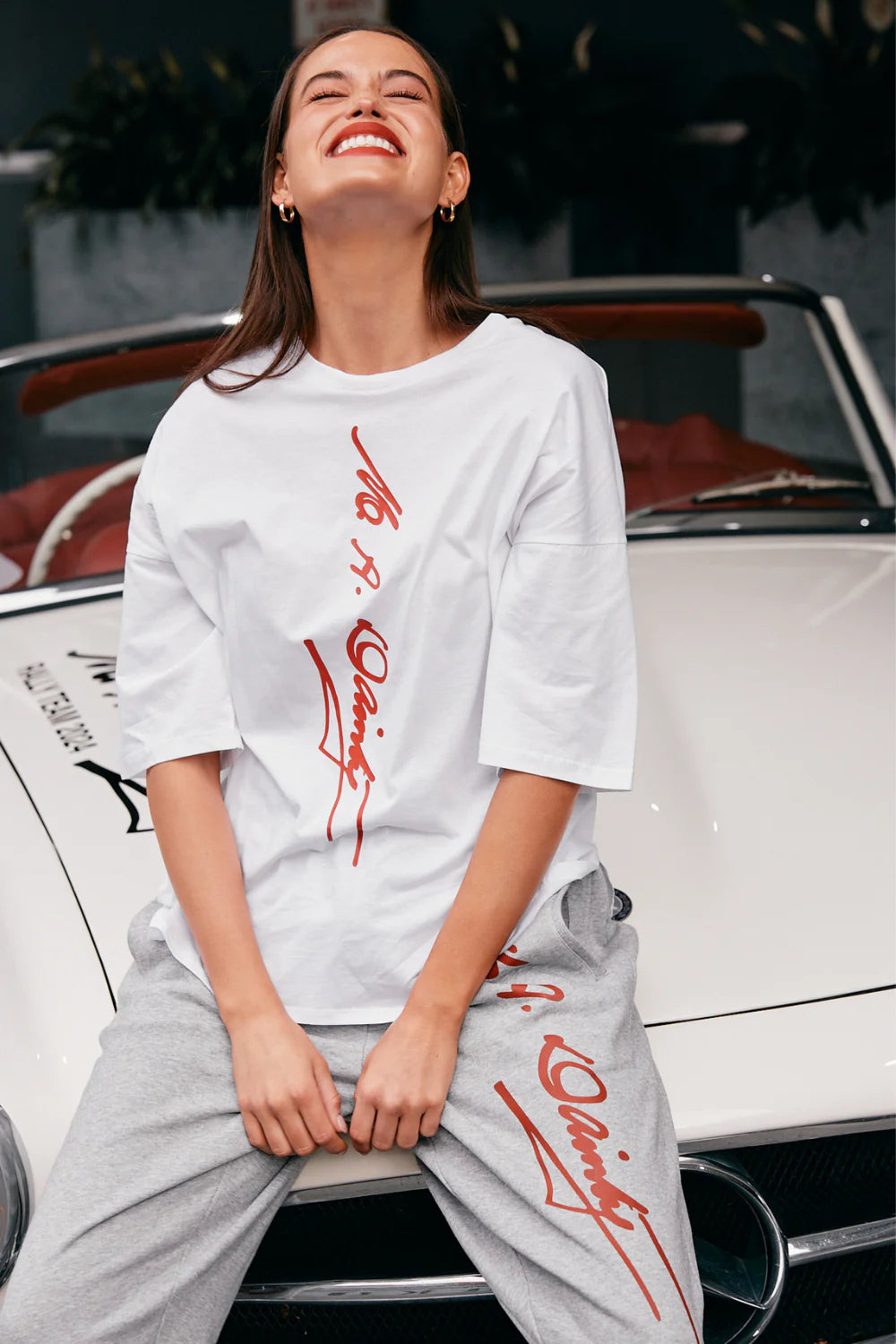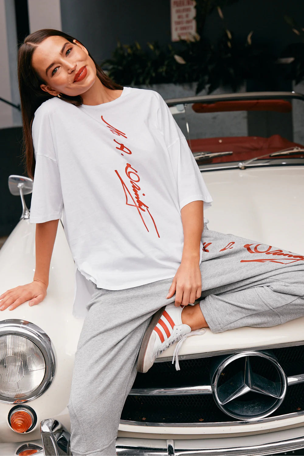 Discover the endless possibilities of the M.A.Dainty Branded Peony Top in Grey Marle. Add a touch of timeless style to any outfit by pairing it with jeans, or simply lounge around in comfort with your favorite tracksuit. This top boasts a relaxed fit, round neckline, and curved hem for optimal versatility.