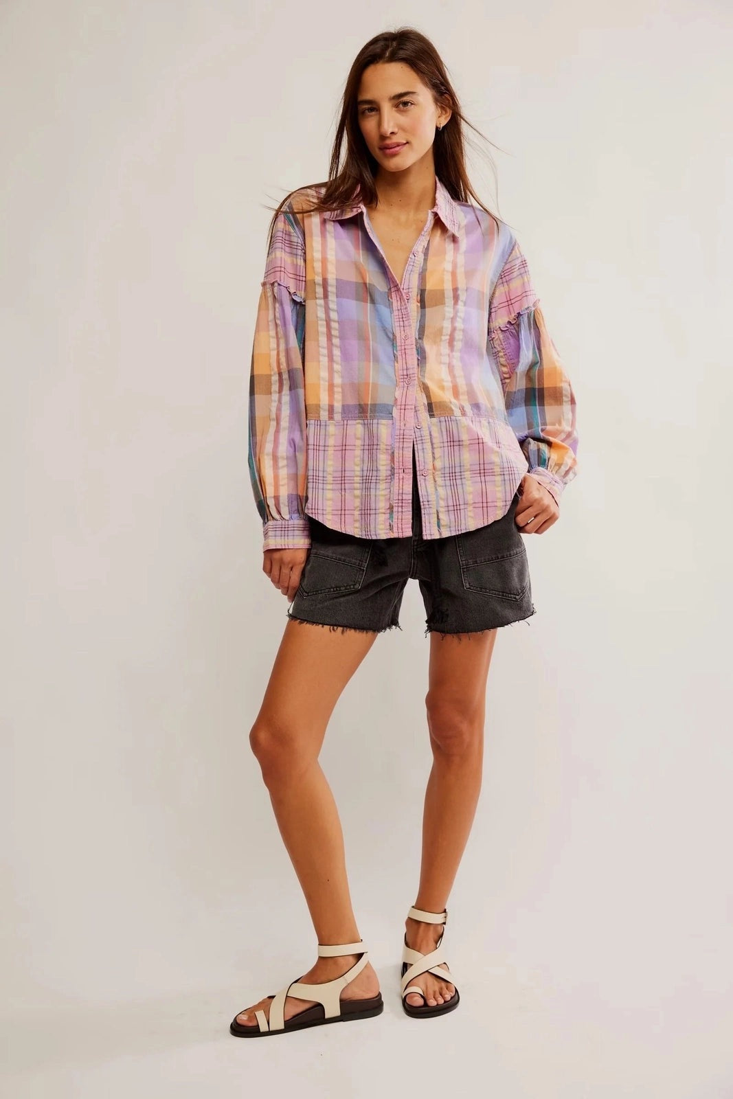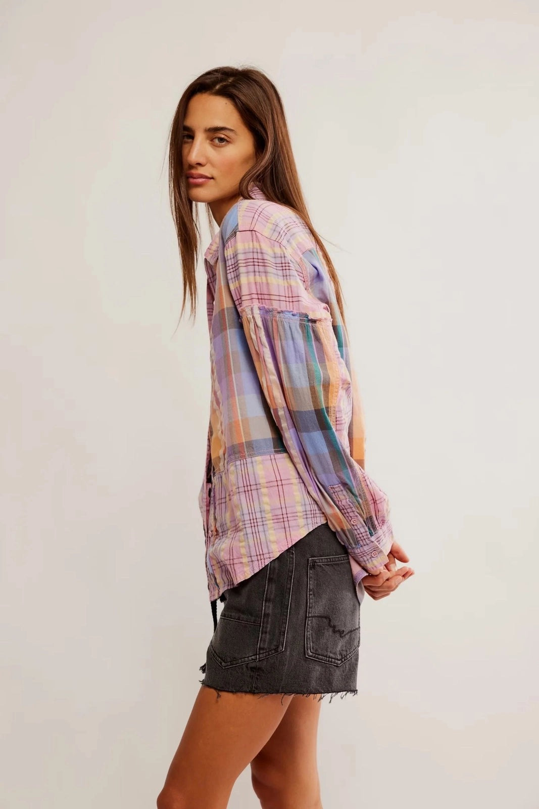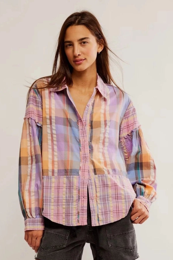 Frilled trims give this plaid button-down from We The Free the perfect touch of texture. Adds a vibrant touch to any spring outfit.