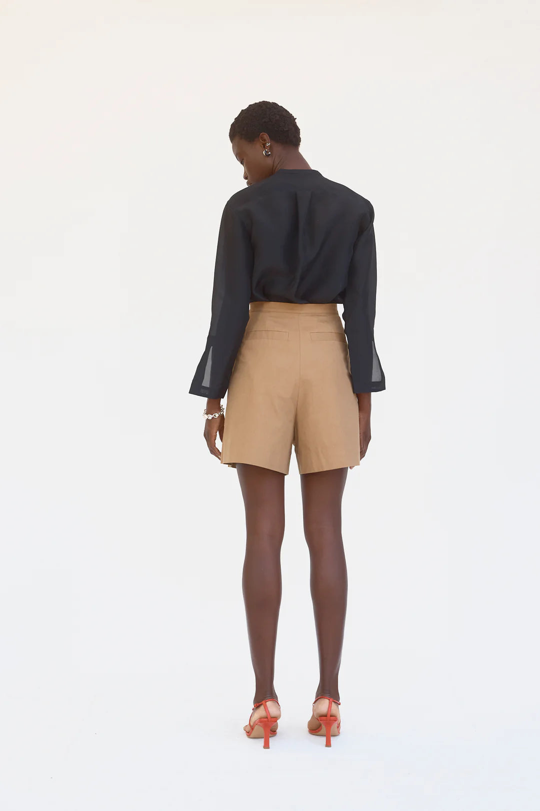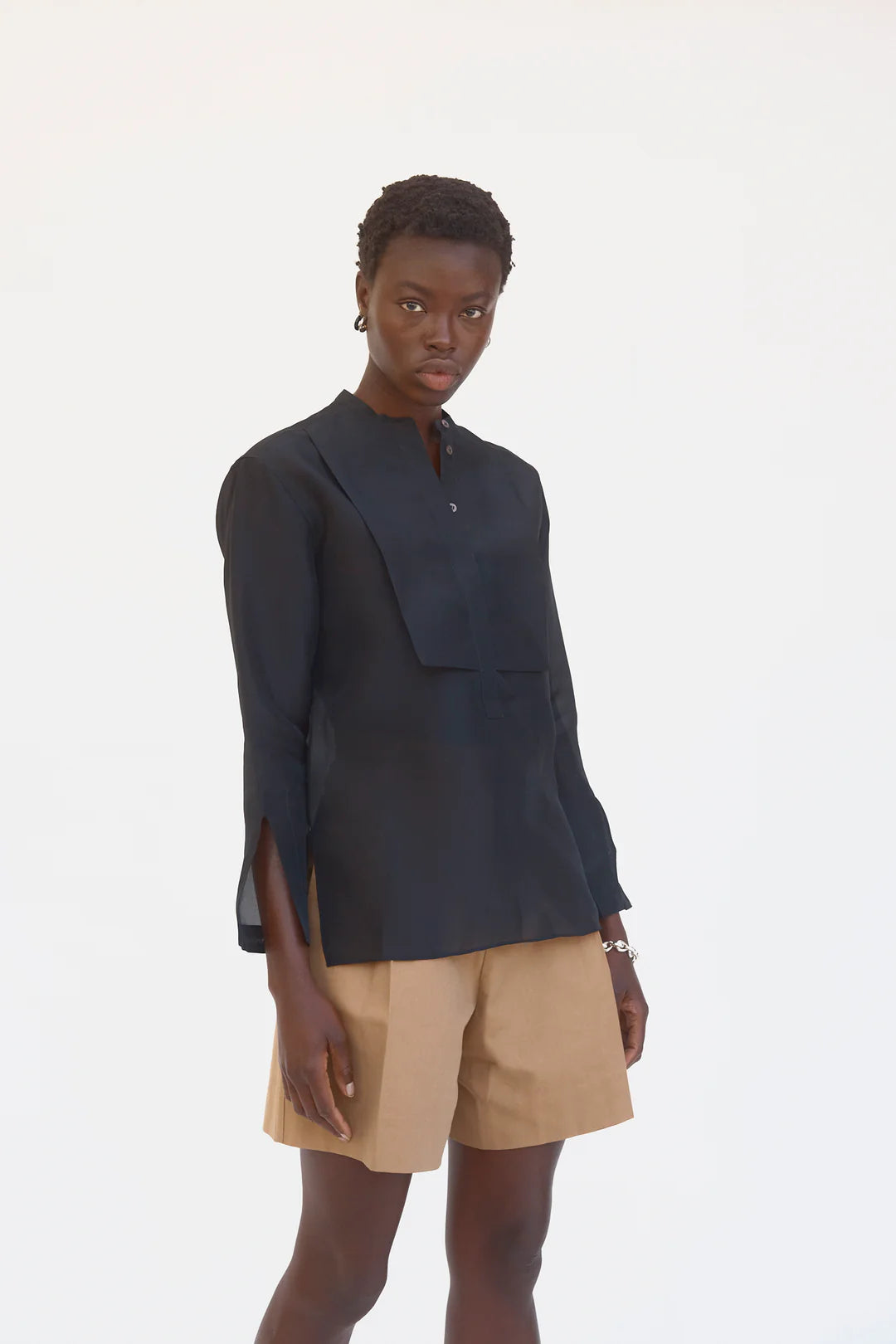 Taking cues from androgynous codes, the Maeve shirt features a grandpa collar, crisp double thickness bib and tidy concealed placket. Subtle glances of wrist via the cuff split instil the silhouettes with a refined feel.