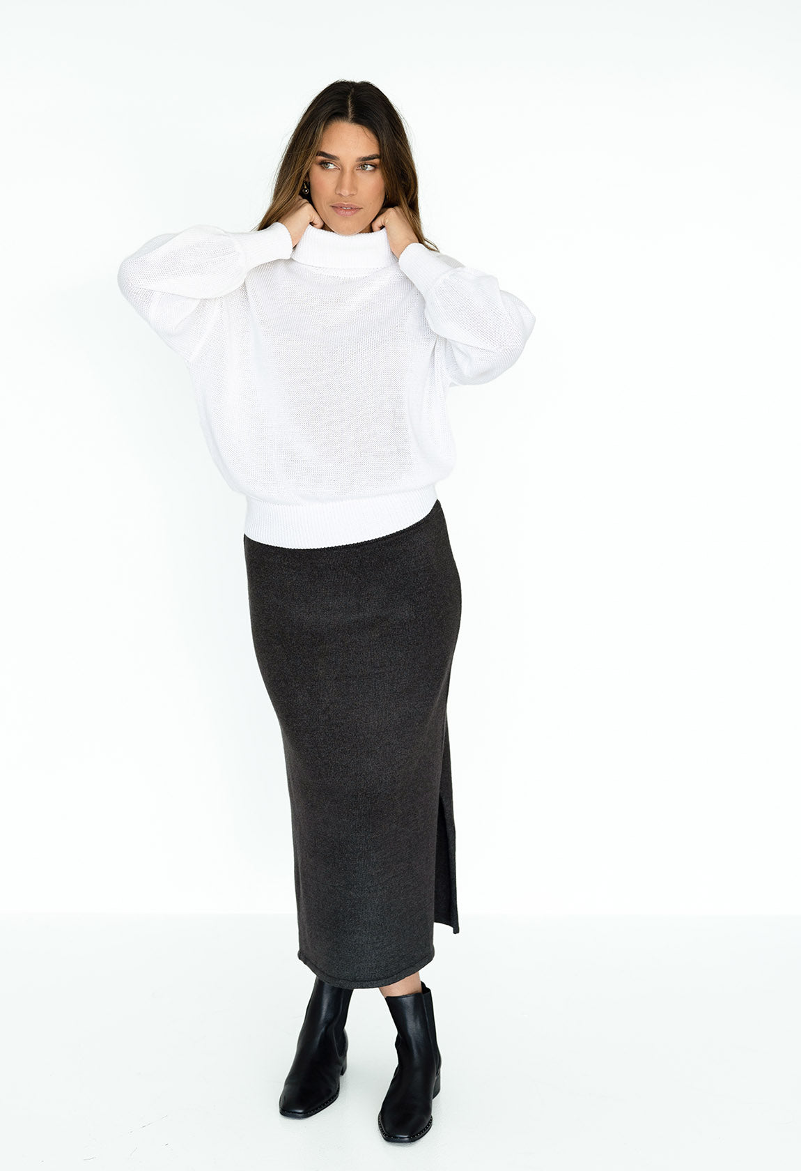 Ramie is a natural fibre that has been blended with cotton to provide extra strength and breathability. The yarn has been knitted into a delicate braided pattern offering a lightweight feel. The Maison is a great basic that will keep you at a comfortable temperature during the cooler months. Also Available in Black.