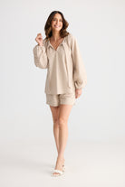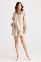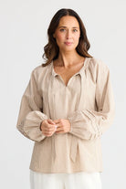 - Long sleeves with pintuck detailing and elasticated cuffs