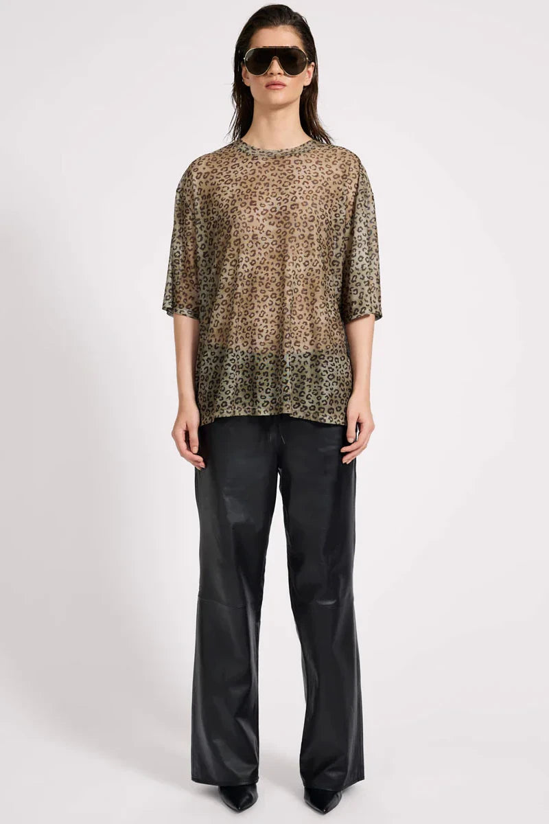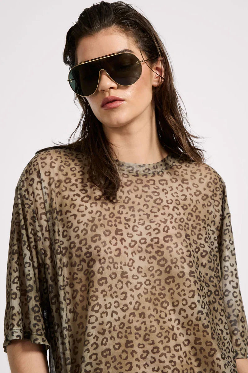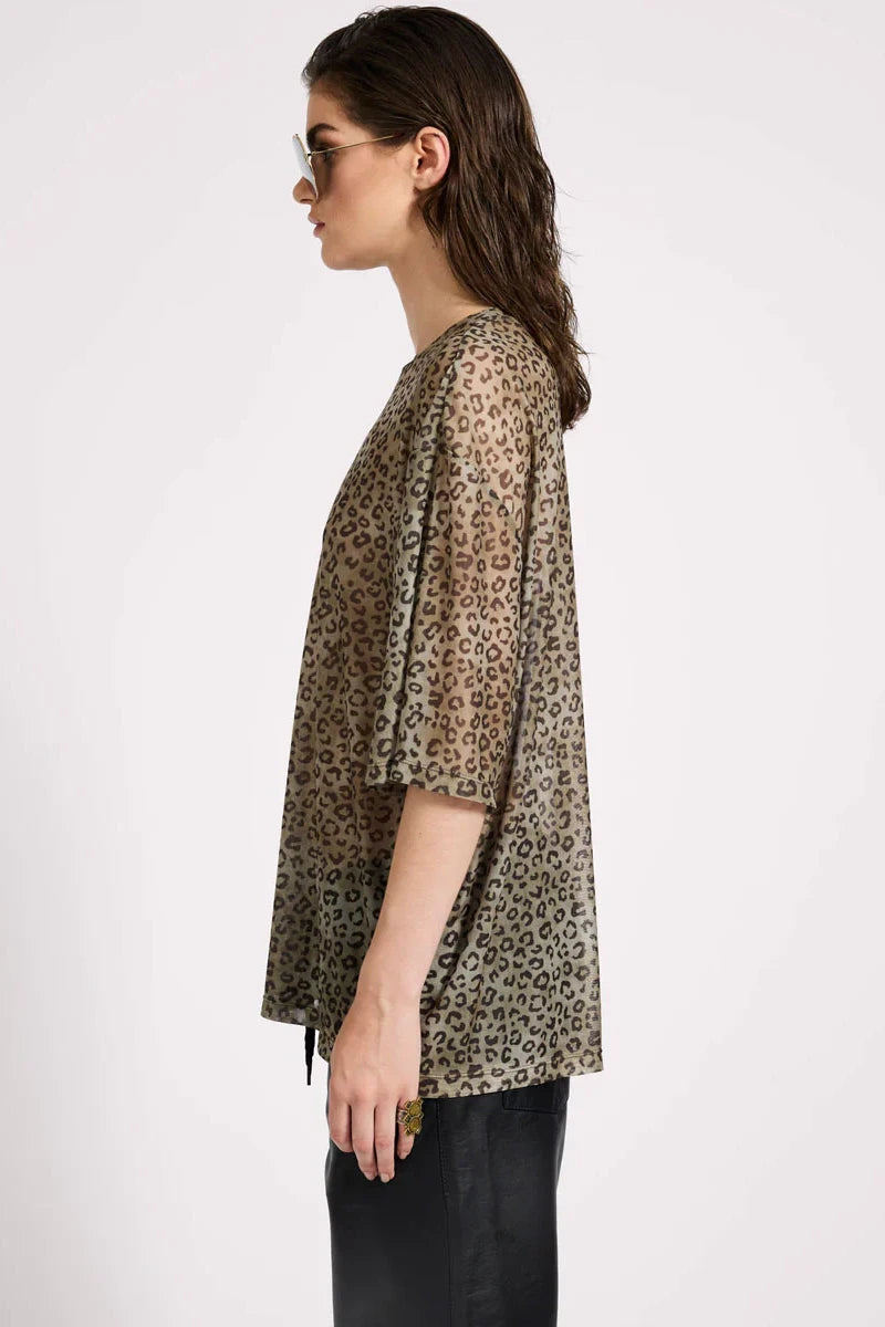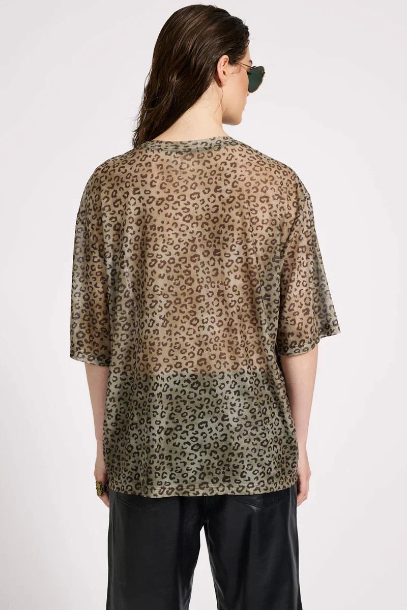 Mesh Striped Oversized Kobe Tee | Khaki Cheetah