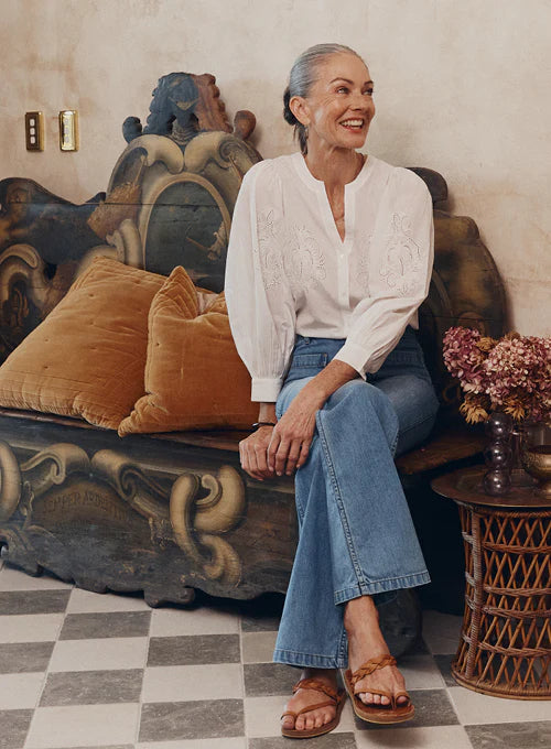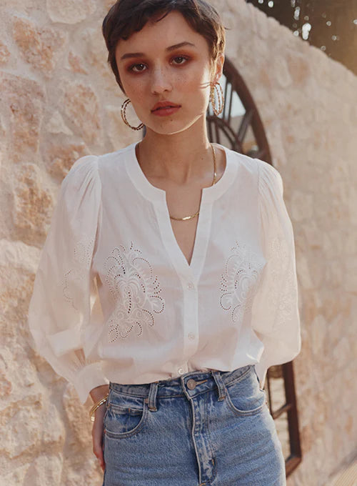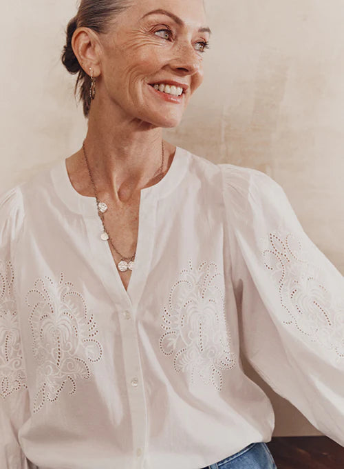 Exquisite lace cut out embroidery featuring palmtrees & Moroccan architectural shapes