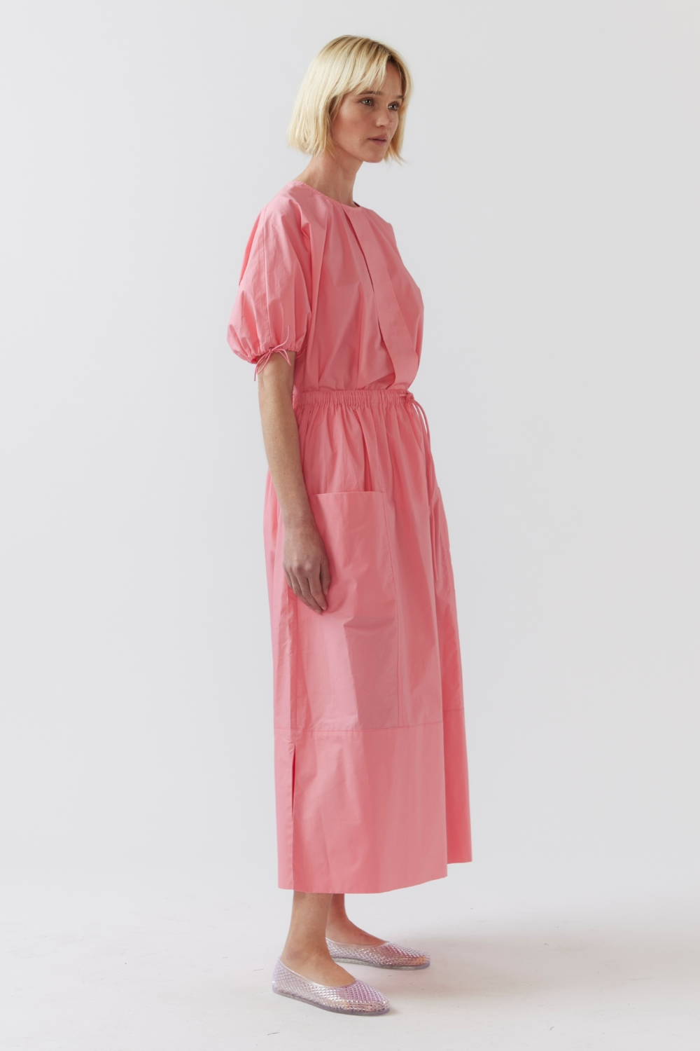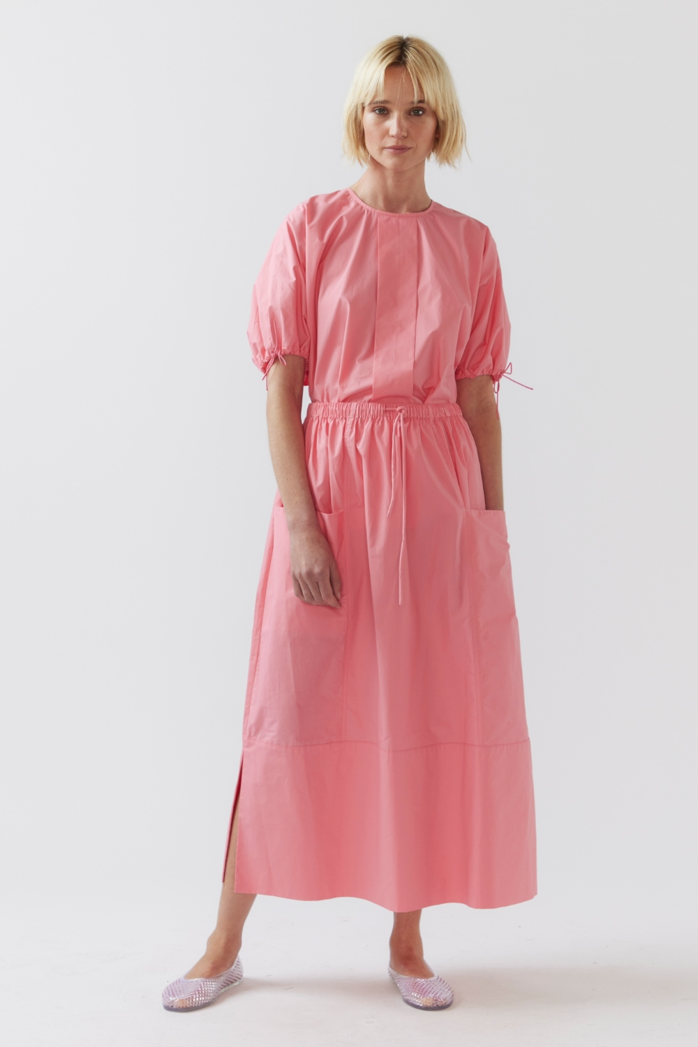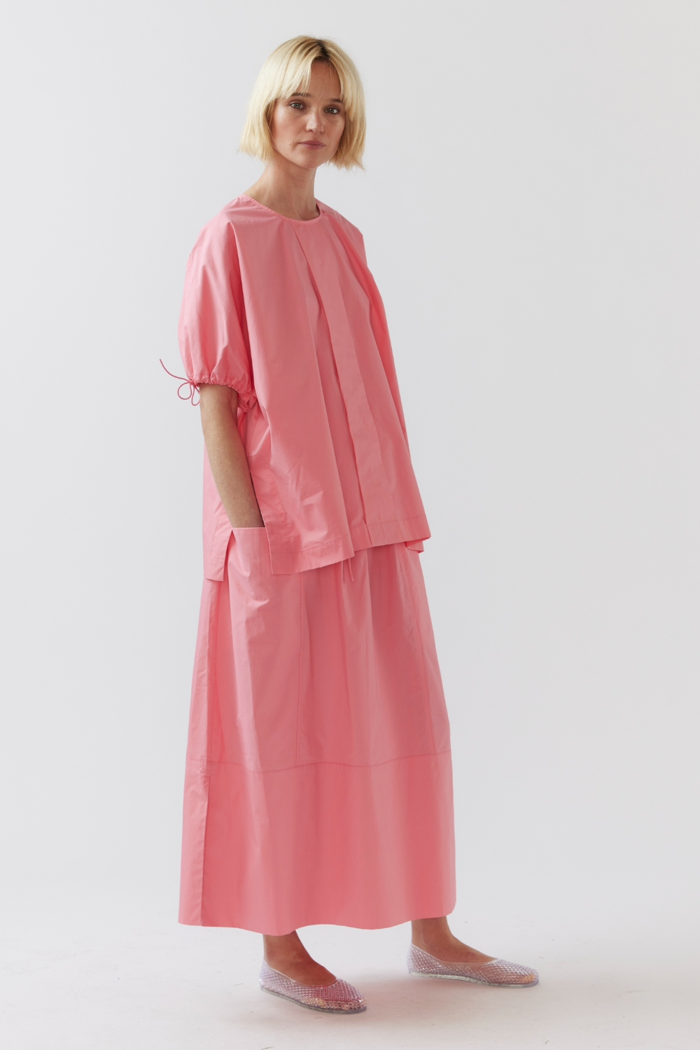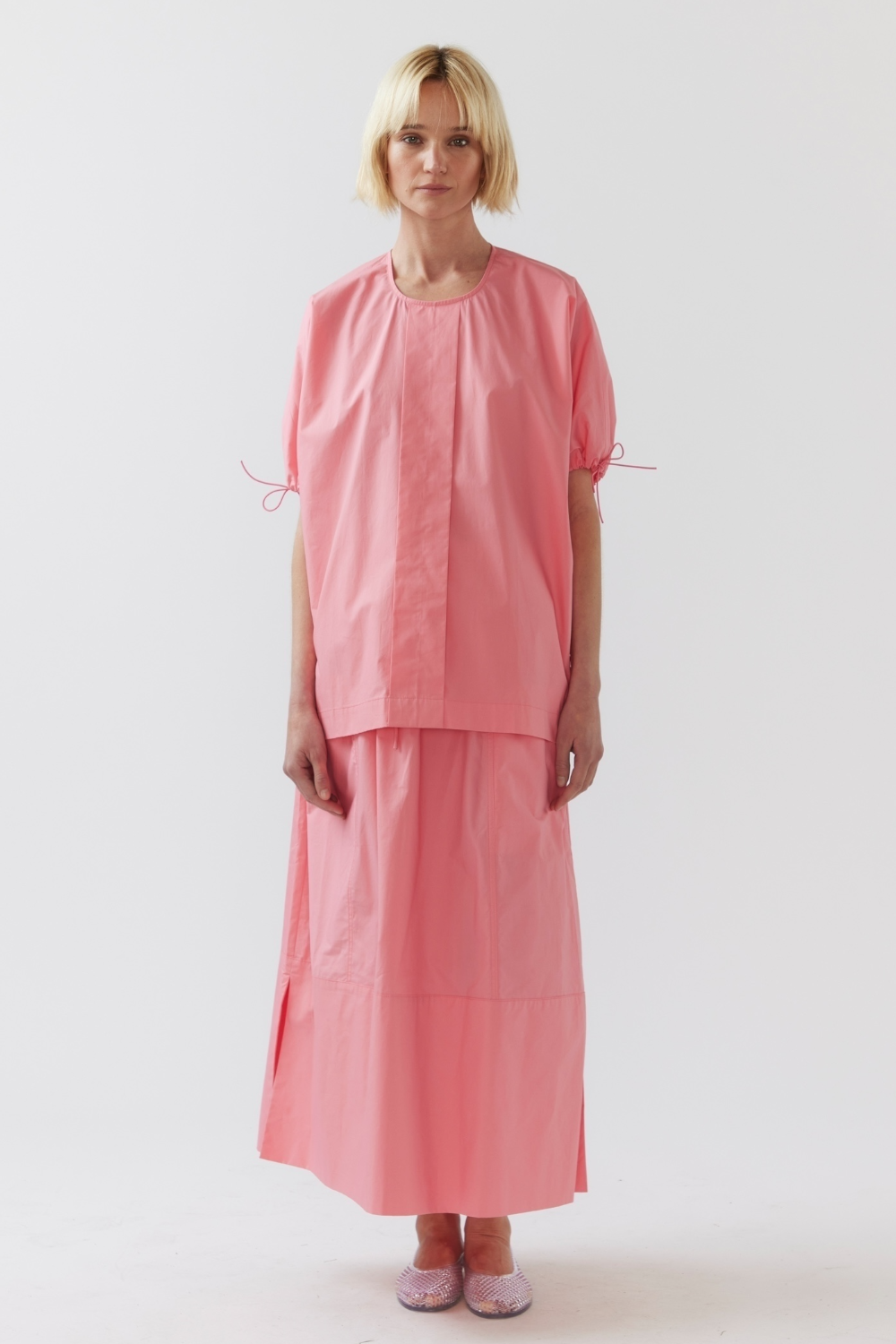 This round neck top effortlessly blends feminine details with modern design. The puff sleeves add a playful, voluminous touch, while the tie detail at the cuff offers an adjustable and unique element. A panel detail at the front creates visual interest, enhancing the top’s flattering shape. Finished with a back neck zip for a clean look and side splits that allow for movement and ease, this top offers both style and comfort.