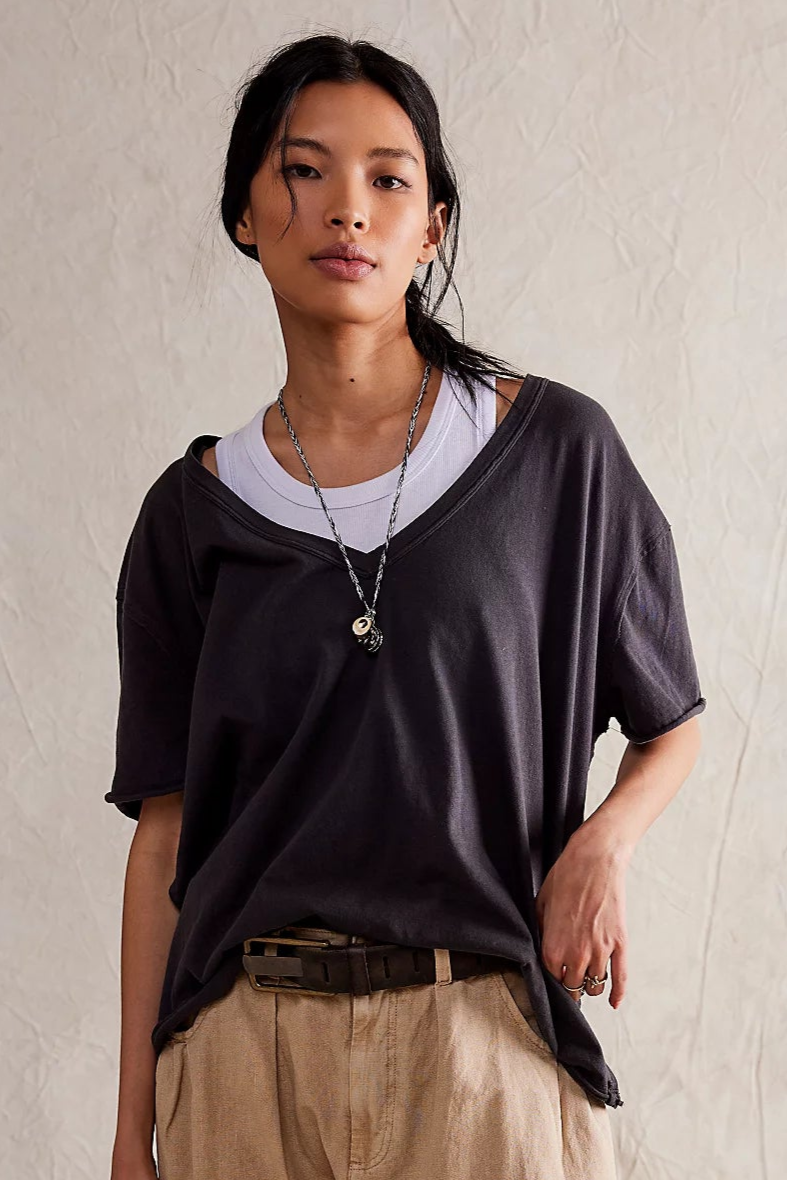 Our favorite wear-everywhere tee from our We The Free collection, now featuring a deep V-neckline. Perfect with your favorite jeans or effortless layered with loungewear, you’ll be reaching for this tee with every ‘fit.
