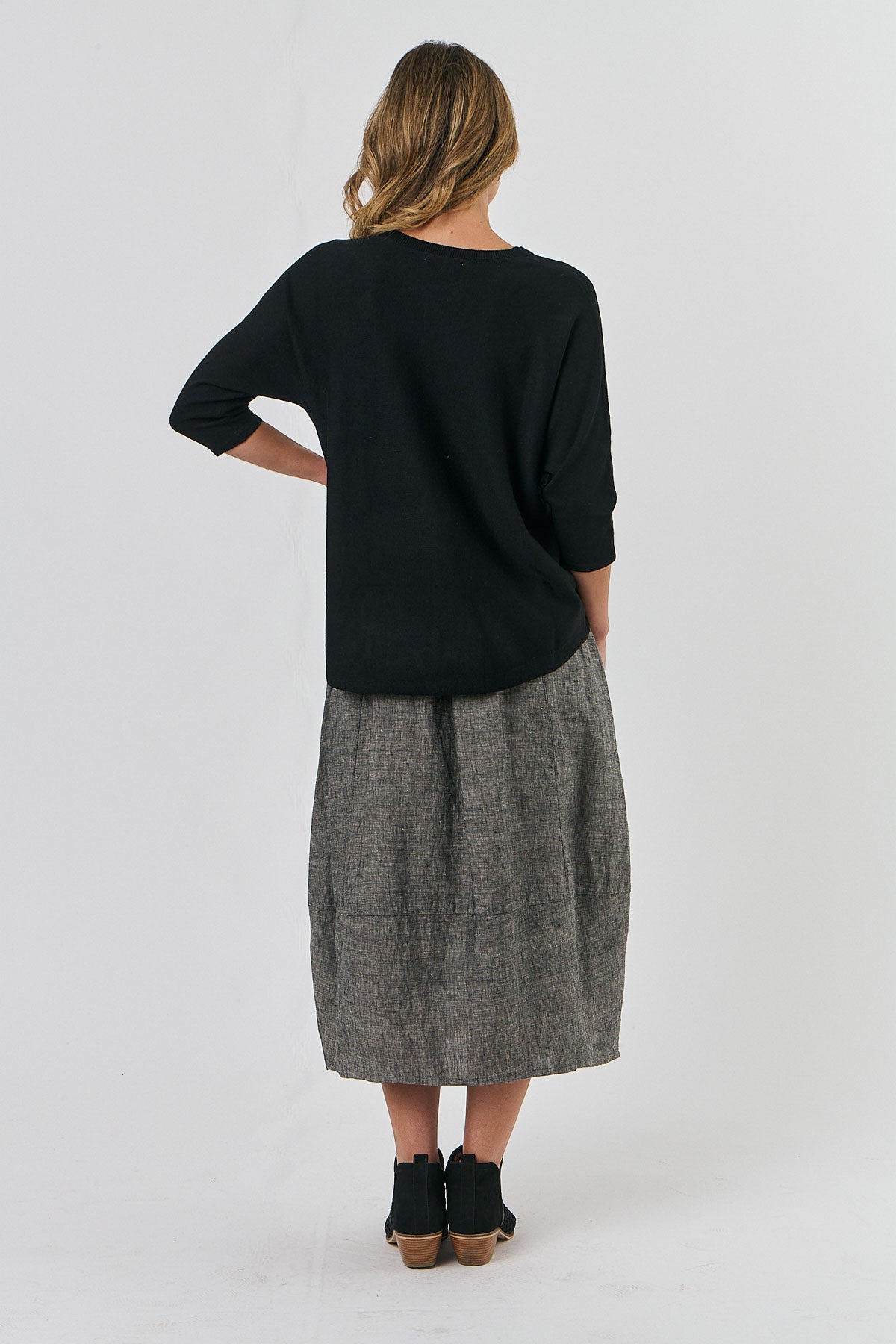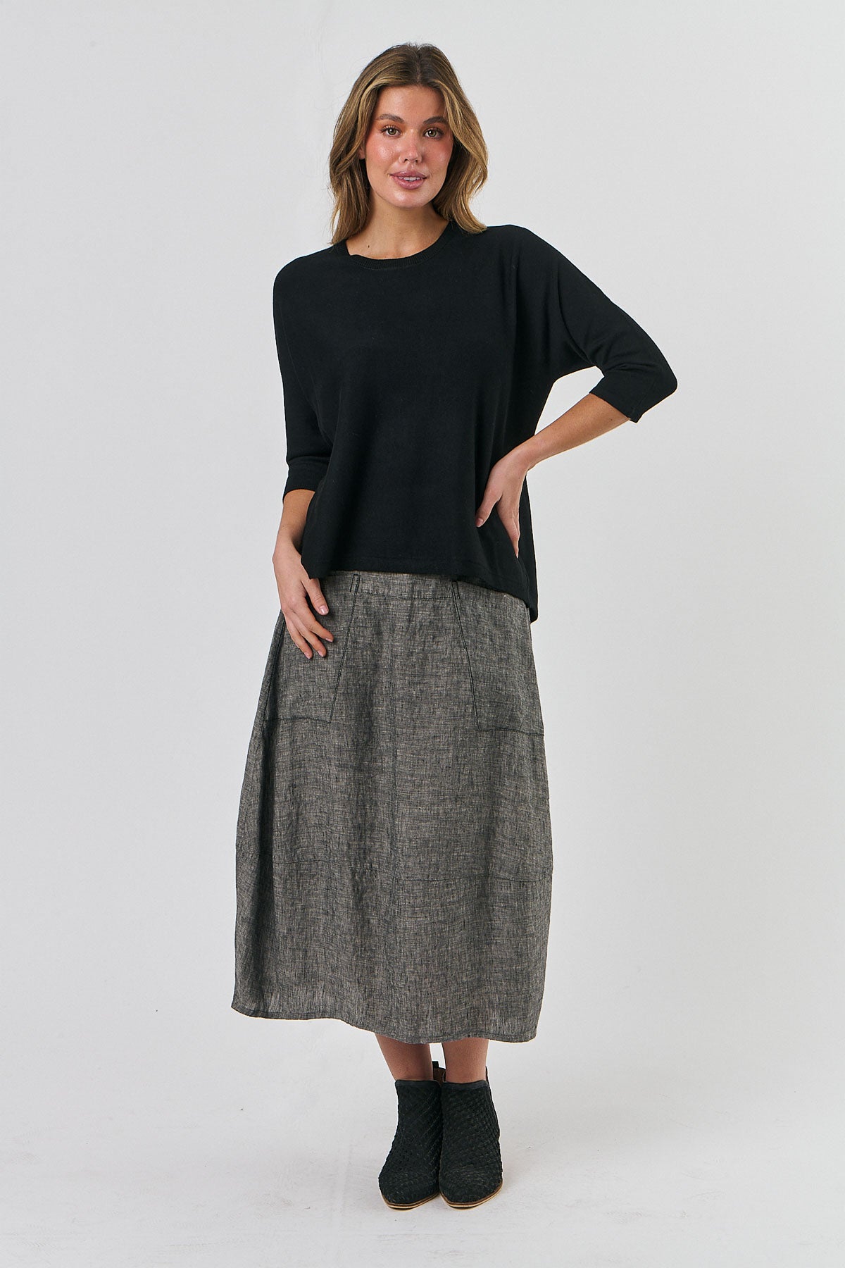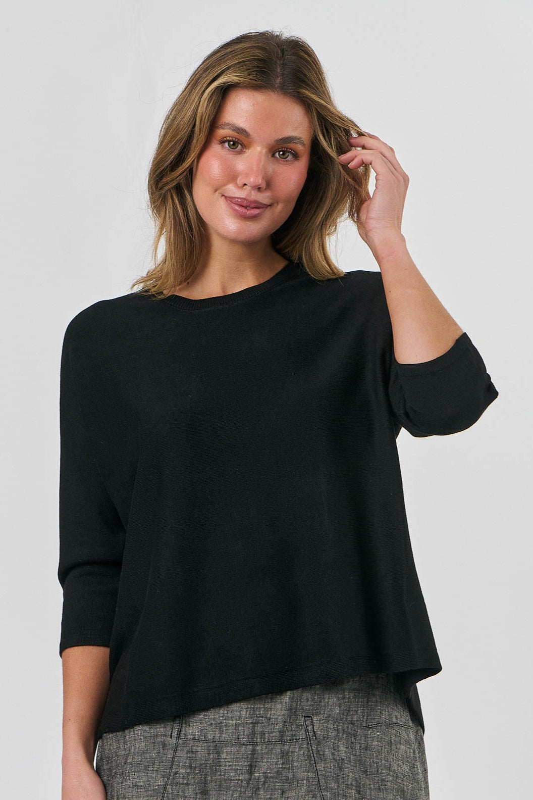 Transform your look this season with this little knit top, featuring a relaxed easy fit with 3/4 sleeves. The lightweight fabric drapes beautifully, creating a flattering silhouette that pairs effortlessly with skirts and jeans or pants.