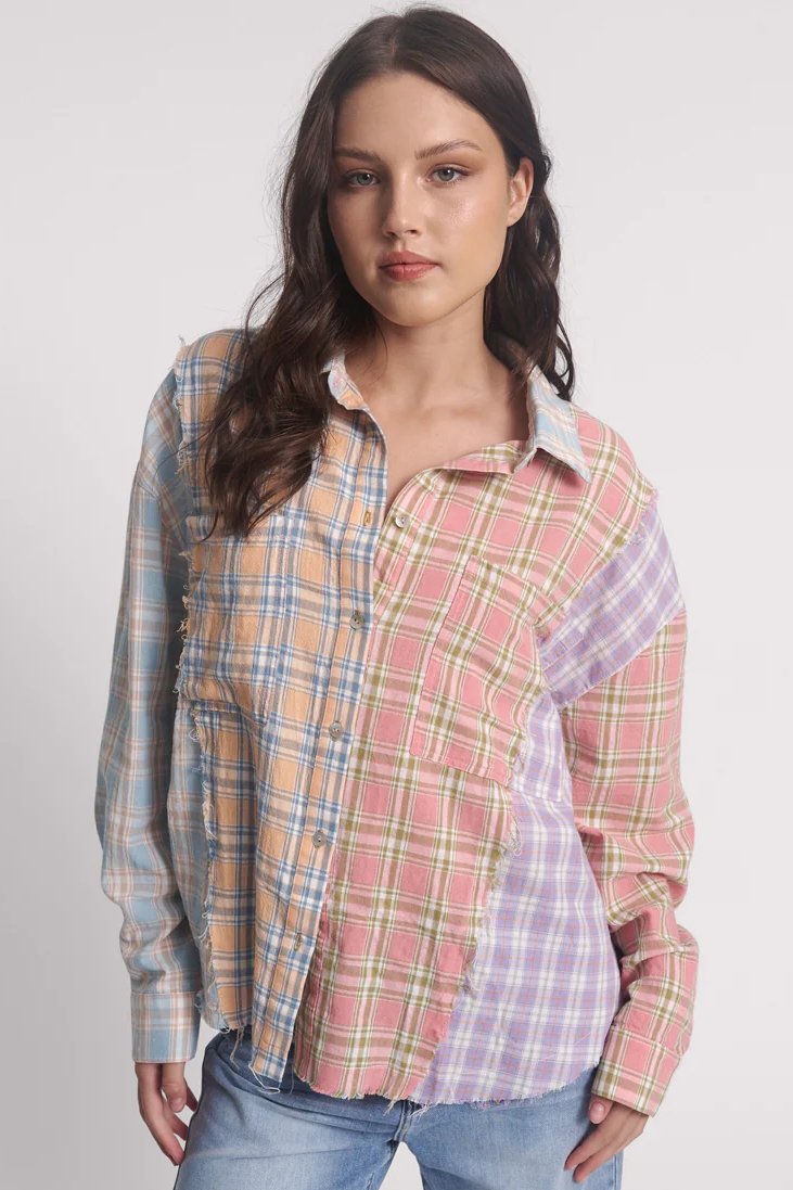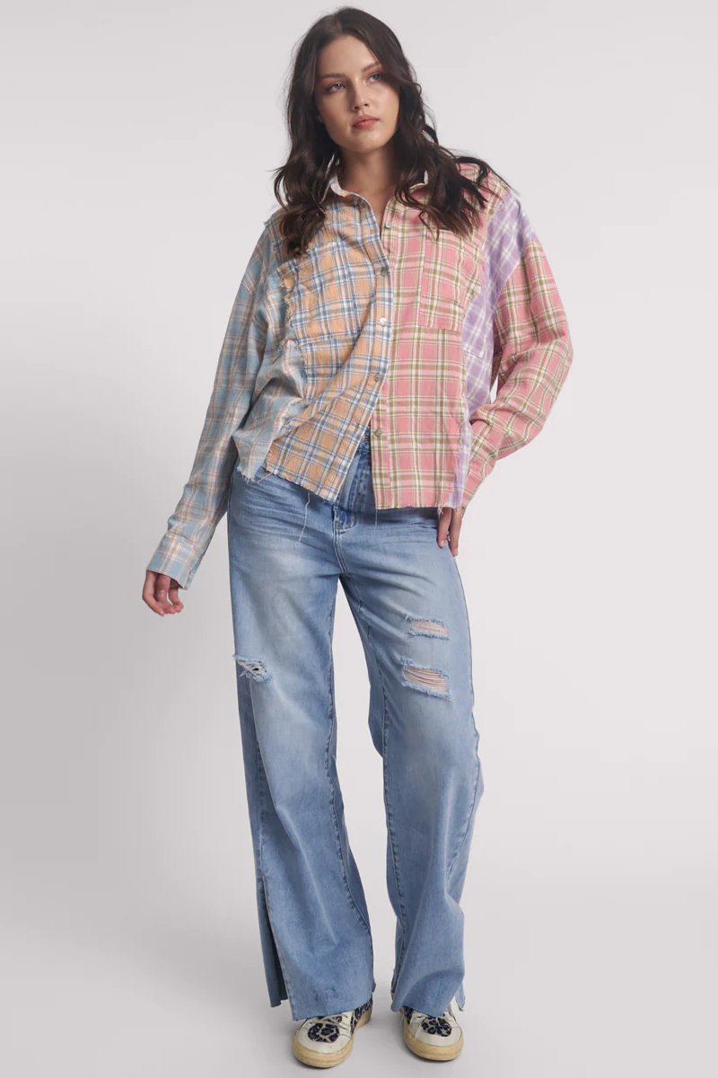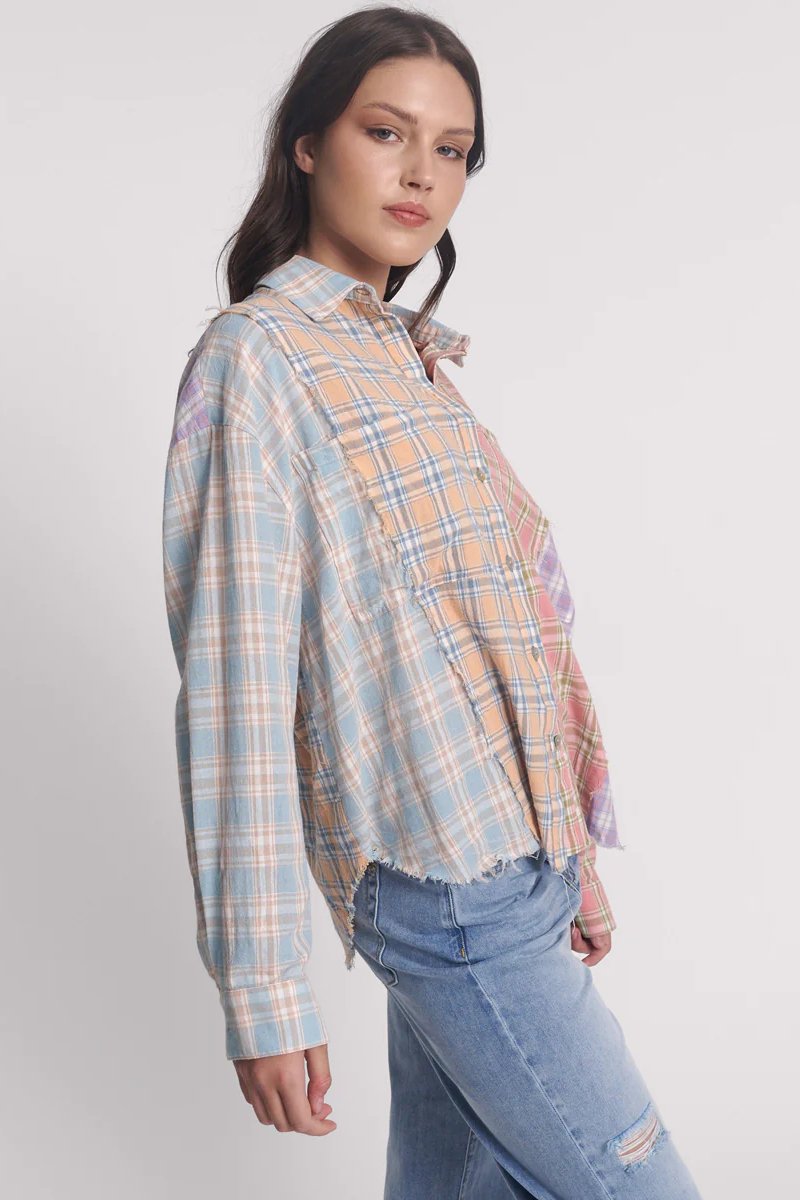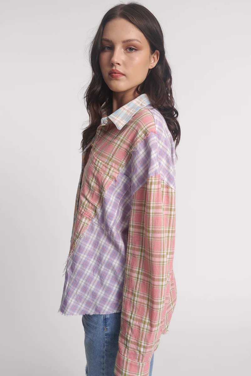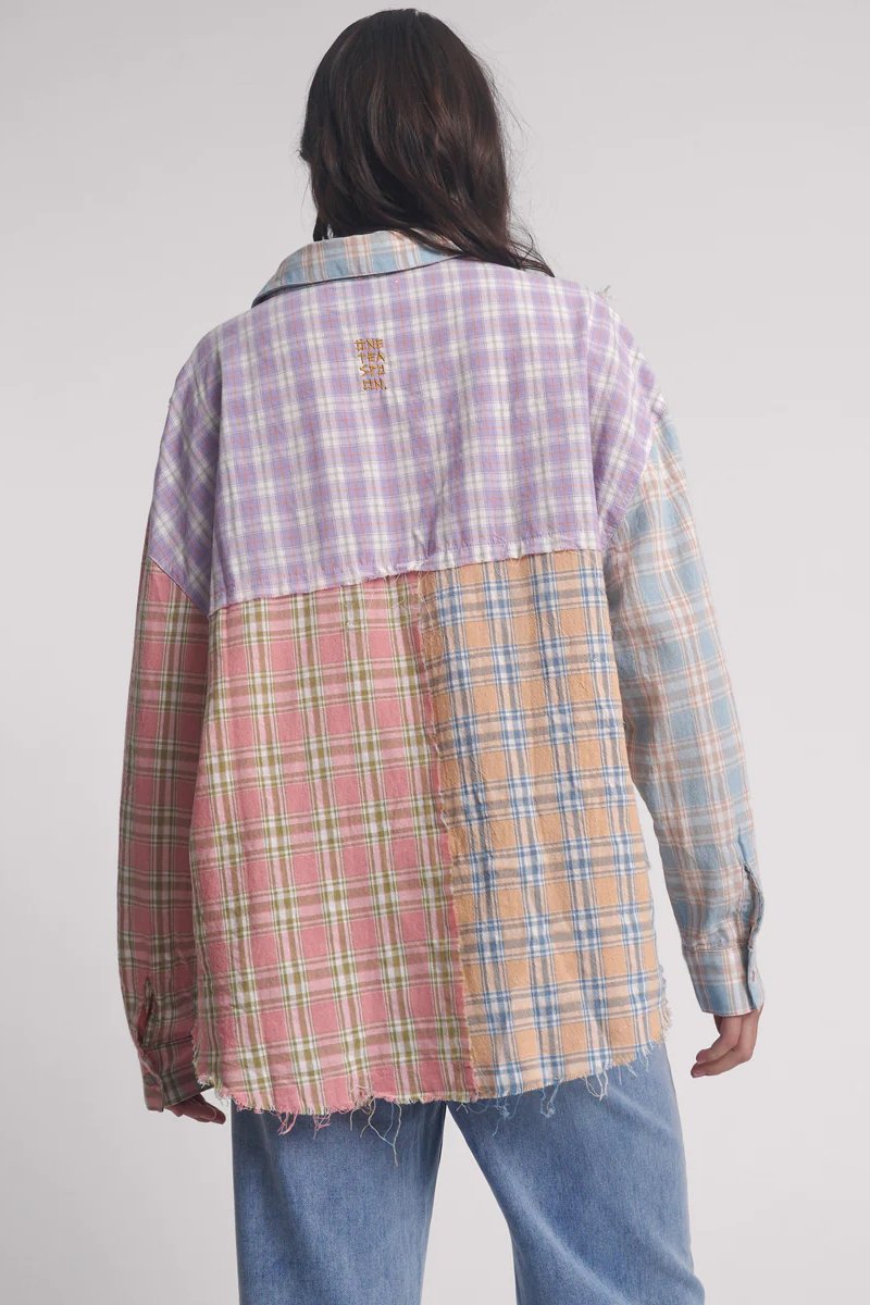 The PATCHWORK COTTON CHECK SHIRT is a pastel dream of mix and matched check prints in complementary pinks, purples, yellows and blues.