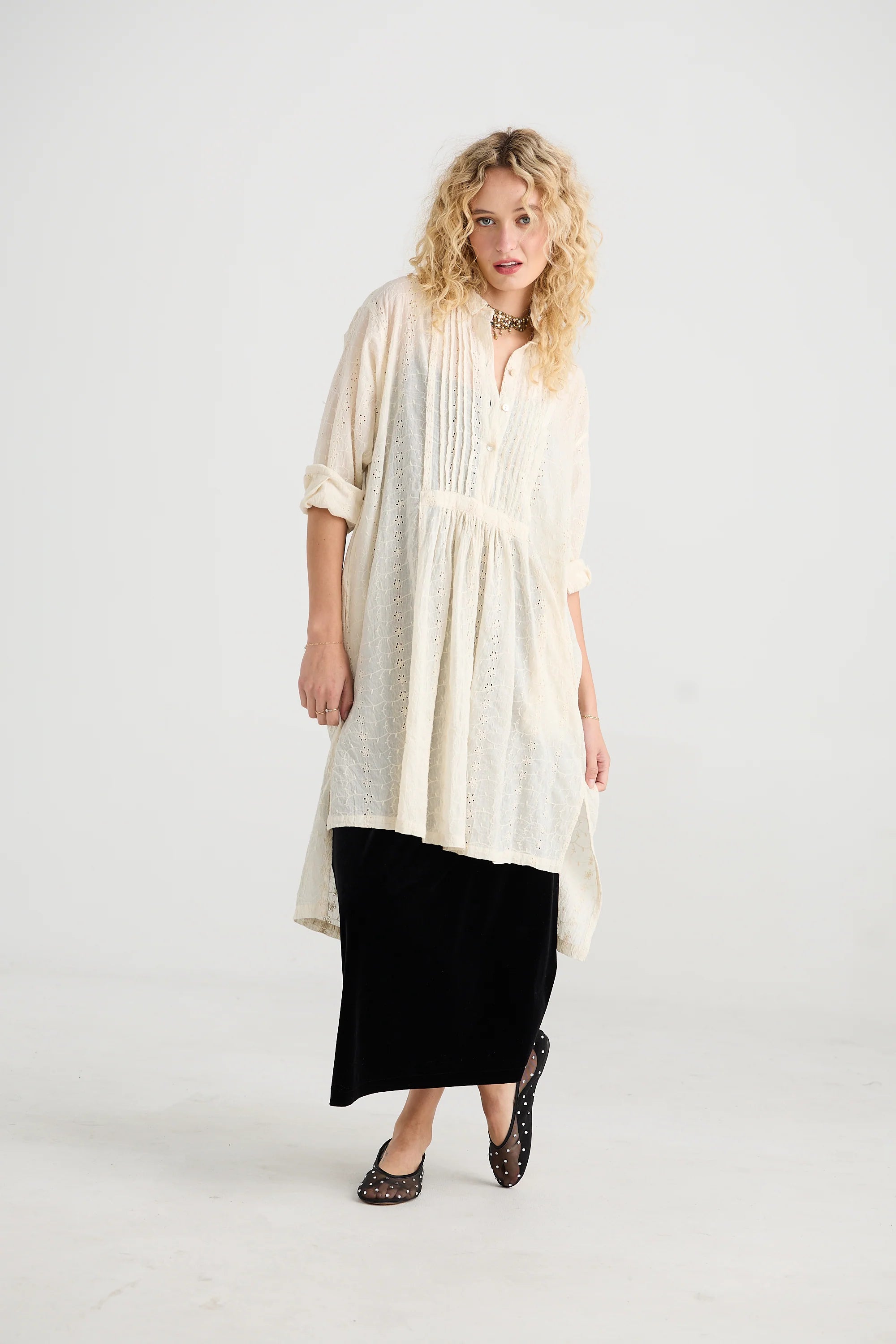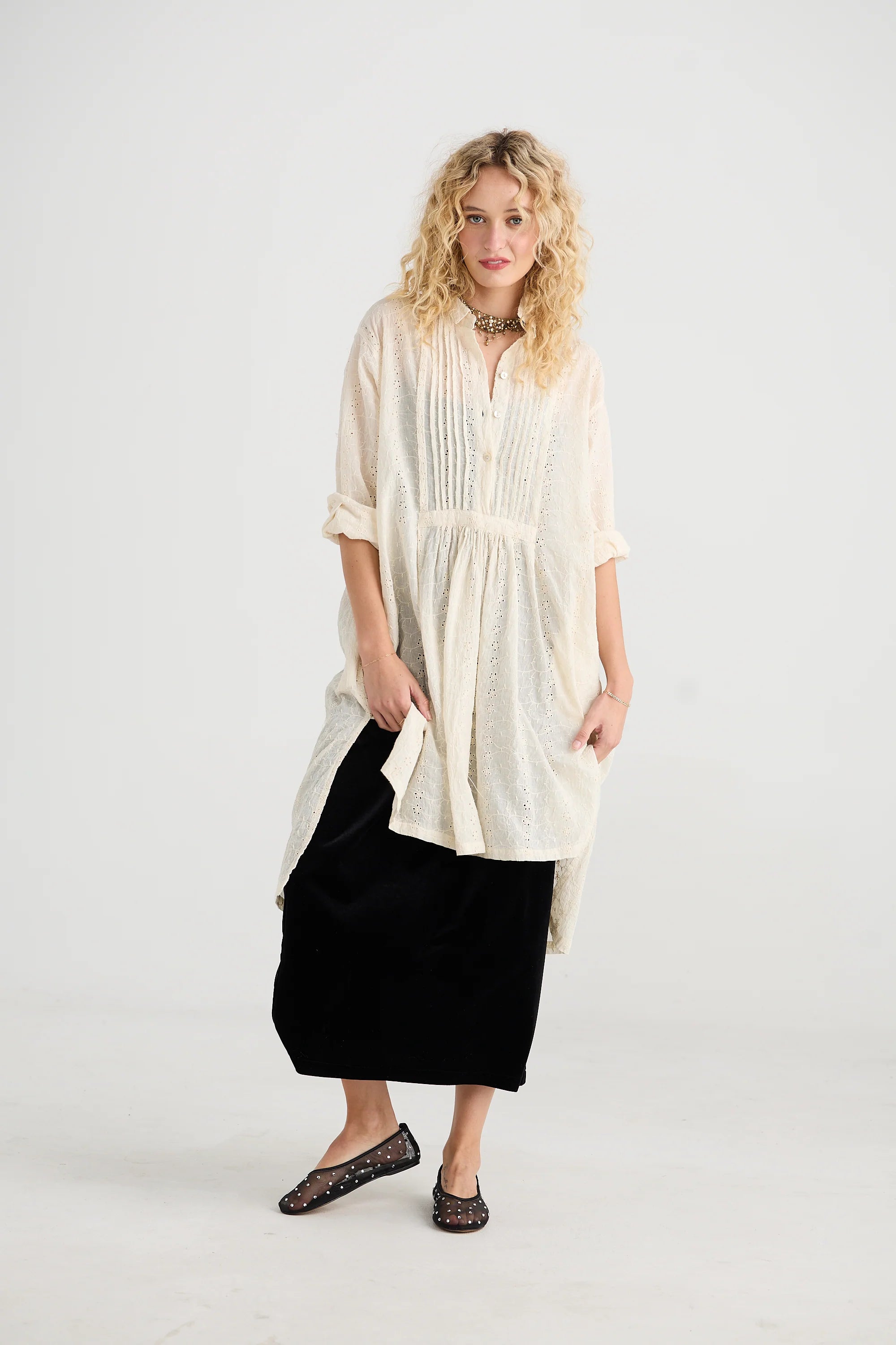 Prairie is a dreamy, long, loose, Romantic shirt made from the softest cotton lace. It is flowy and flattering to all shapes .