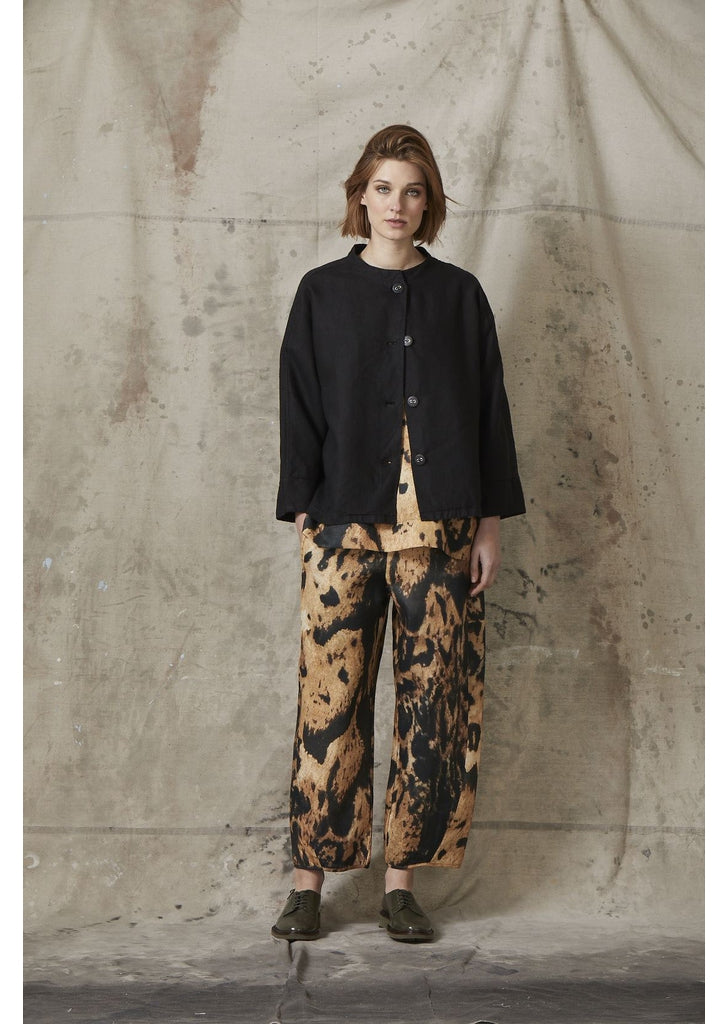 The Print Linen Top by Valia is part of the AW 2019 Collection. This collection features trans seasonal pants, tops and dresses of varying grades of linens and cottons.