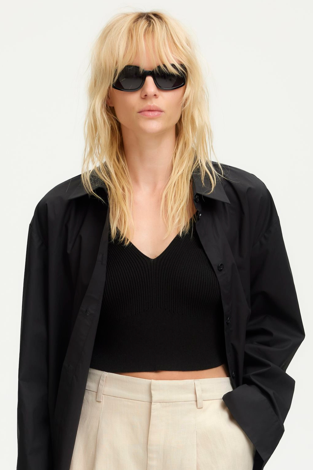 A modern cropped top with trendy details. Knit in a flattering fit, with a v-neck, straps, and low back. Responsibly made in a soft, breathable Naia Acetate blend. Also Available in Evening Promise.