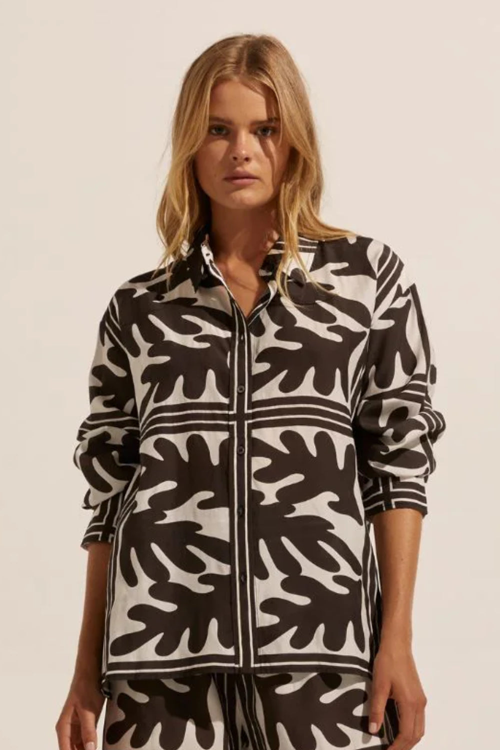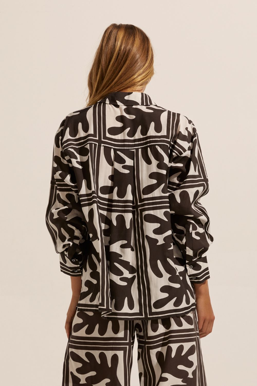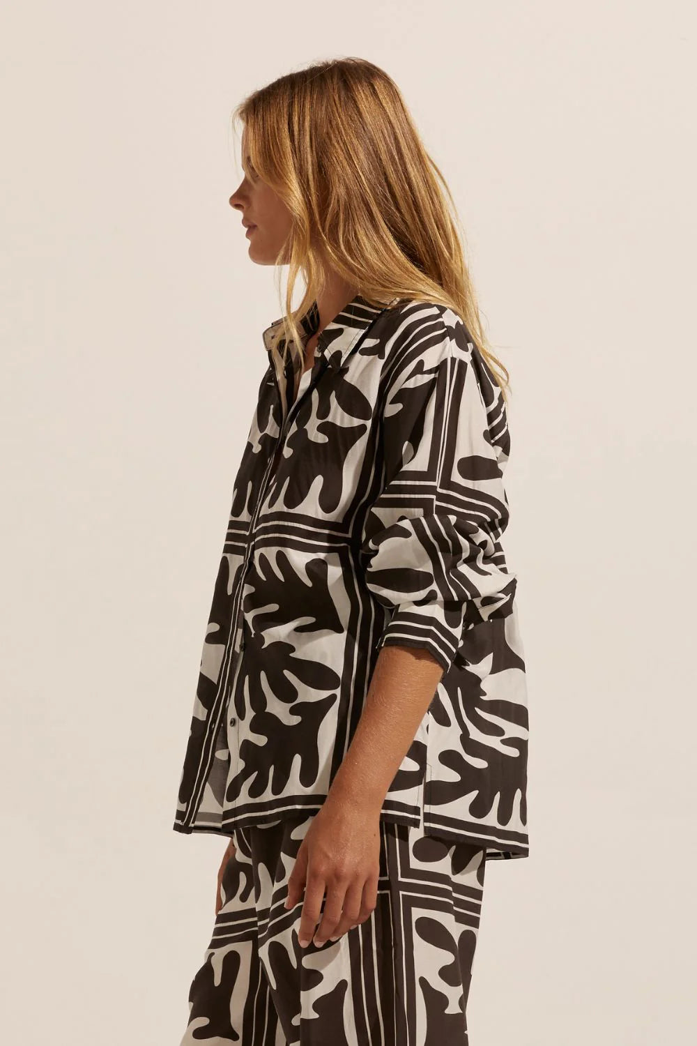 Embrace 2 tone and 2 piece dressing for exceptional ease and style this season. The frond is our exclusive and alluring combination of leaf motif punctuated with a simple stripe to create a modern impactful print. This placement print creates a stunning shirt in the reflex. A statement piece that can be worn back with denim or linen or teamed with the matching breeze pant. This print on print look is the epitome of cool. Modern and nonchalant style for your vocation and vacation. Available in Frond Wave and Choc Frond.