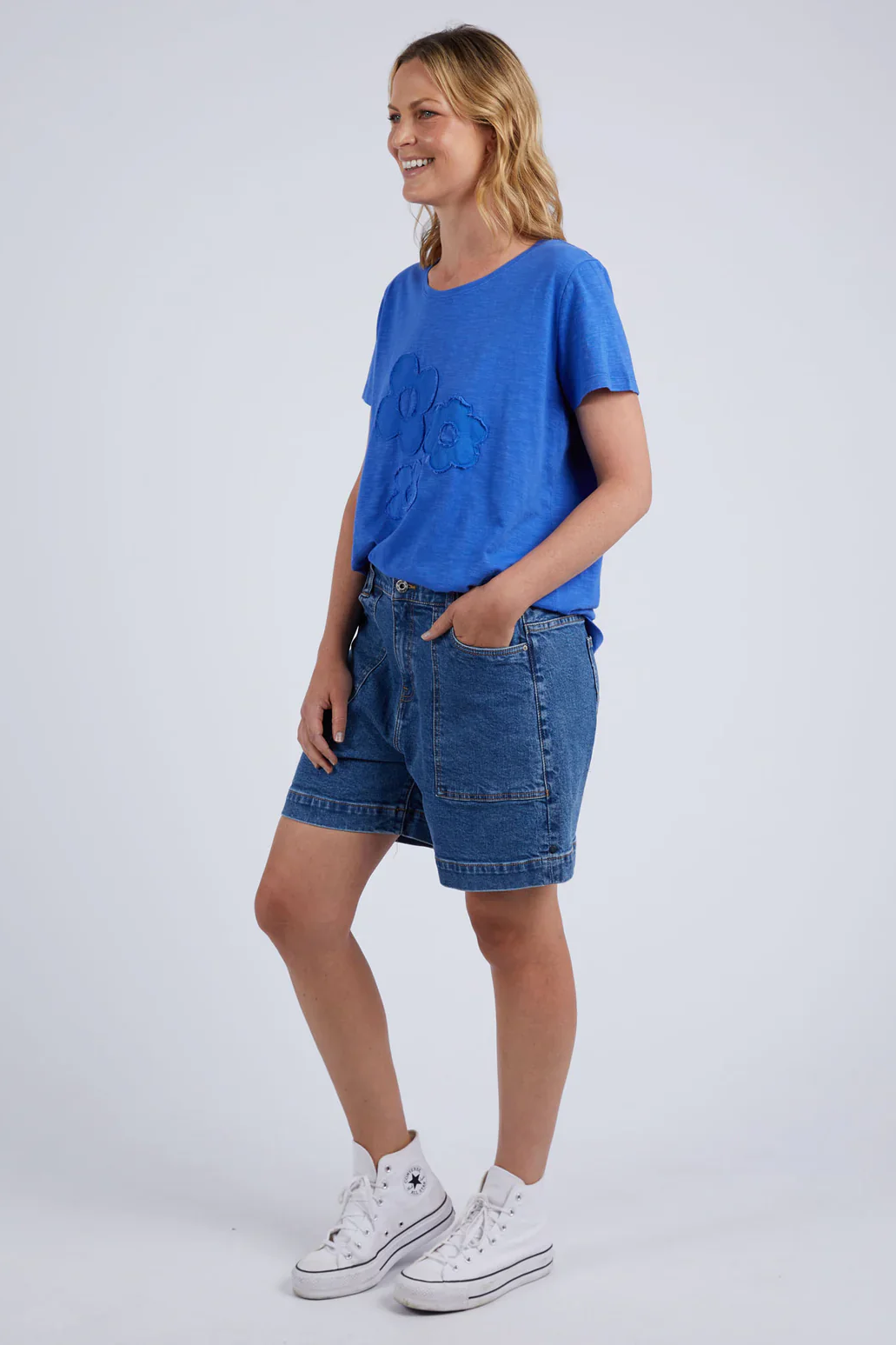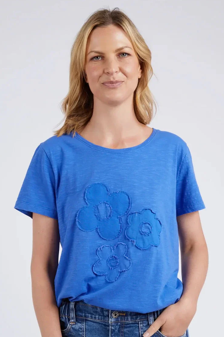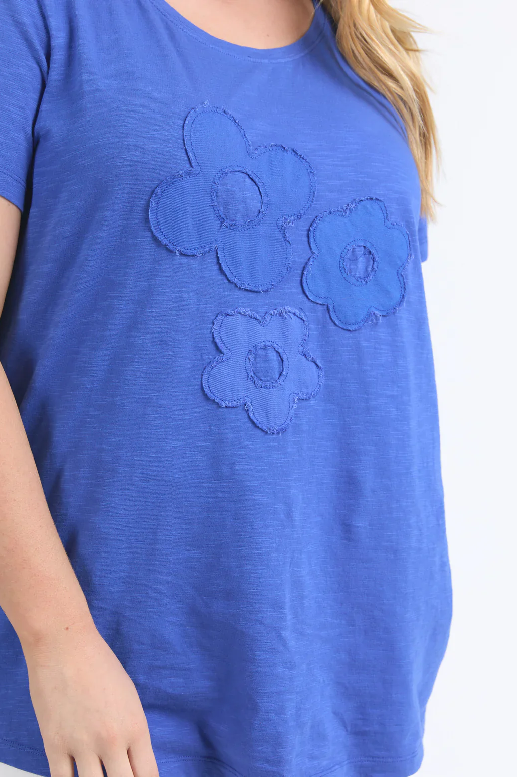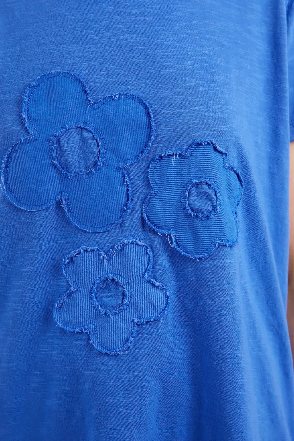 Featuring a tapestry of lovely appliqued flowers, the Tapestry Tee is a gorgeous royal blue t-shirt that will never go out of style.