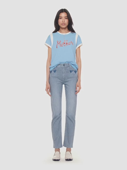 The Boxy Goodie Inset Tee | MOTHER Script Bluebell