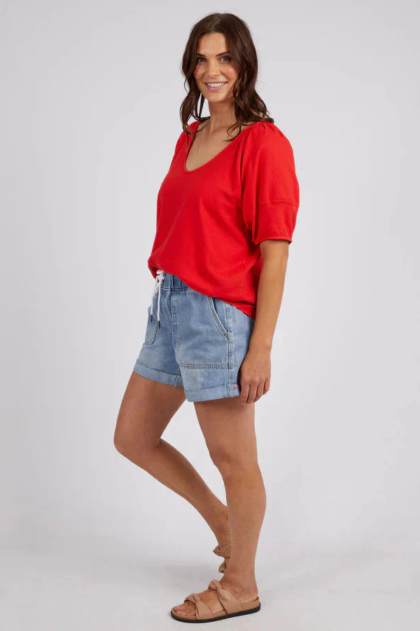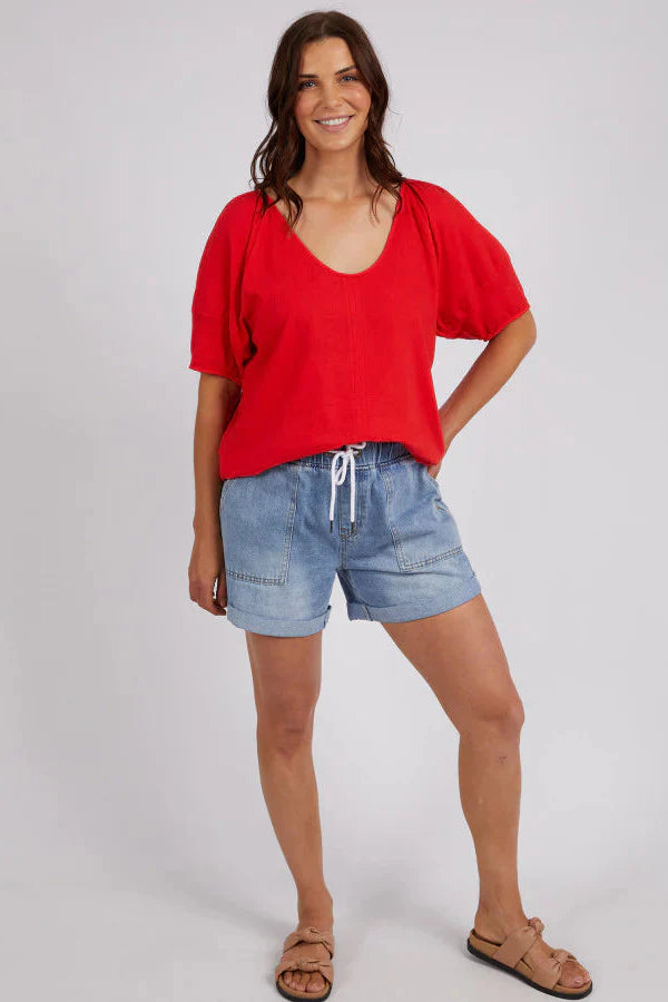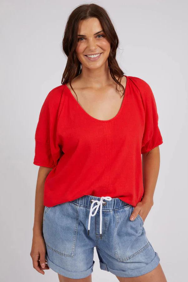 We love the Elm The Grove Top, a perfect choice for those who seek both style and comfort. The bittersweet red will make a perfect Christmas outfit. This top offers a flattering fit providing a comfortable and breathable feel. Elevate your wardrobe with this elegant and versatile piece!