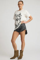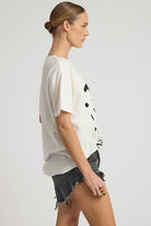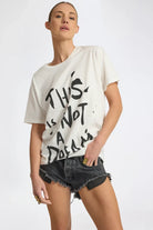 The WHITE THIS IS NOT A DREAM BOYFRIEND TEE is an easy, throw-on graphic tee with relaxed attitude. Cut in a classic oversized boyfriend fit, it delivers that effortless, borrowed-from-the-boys feel we’re known for. Crafted from soft cotton jersey, this short sleeve crew neck tee features our This Is Not A Dream limited edition print—made to feel worn-in, expressive, and unmistakably One Teaspoon. Style it with denim shorts for laid-back days, tuck it into denim jeans for an off-duty edge, or layer under jackets for a cool, undone look.