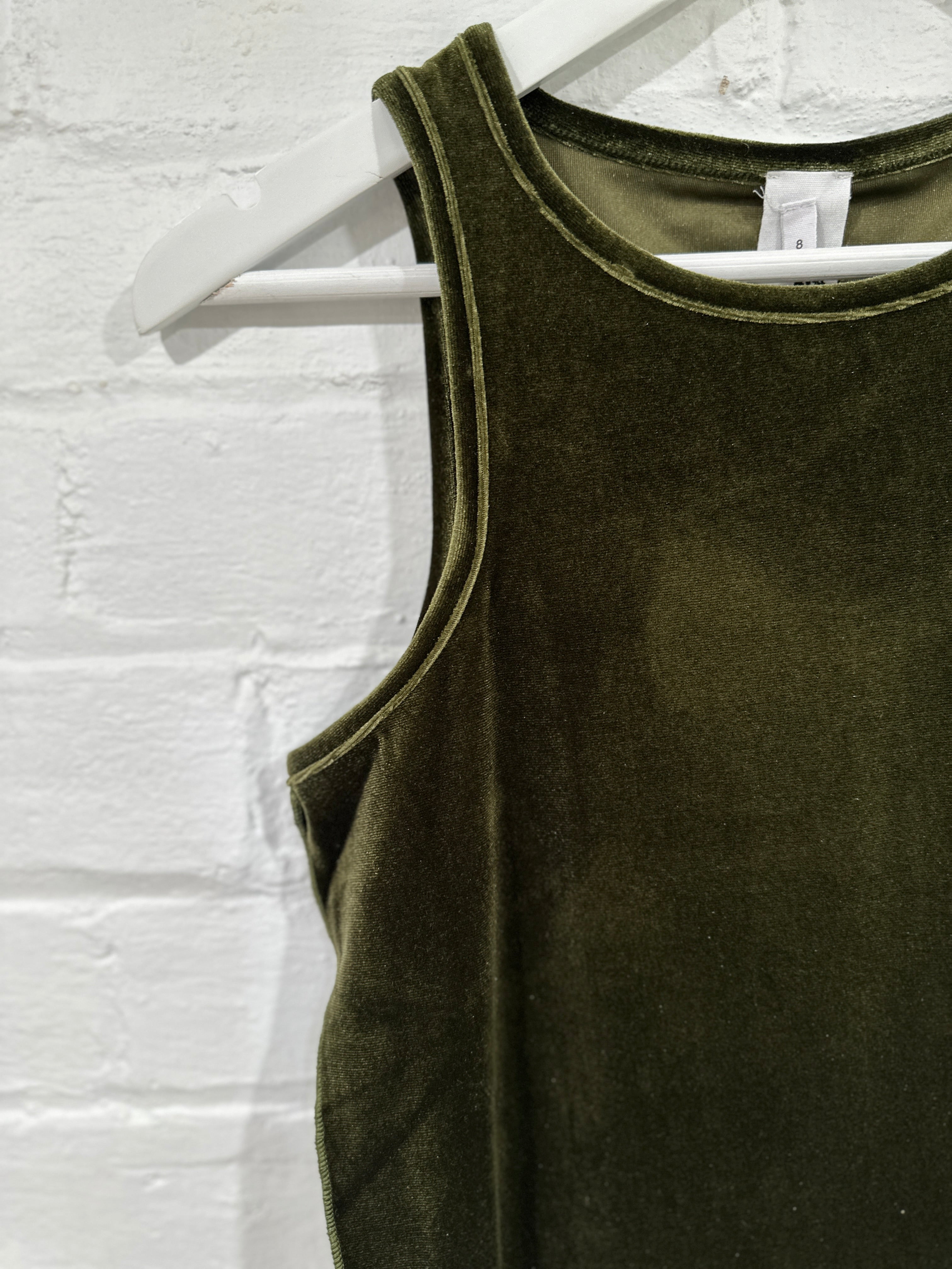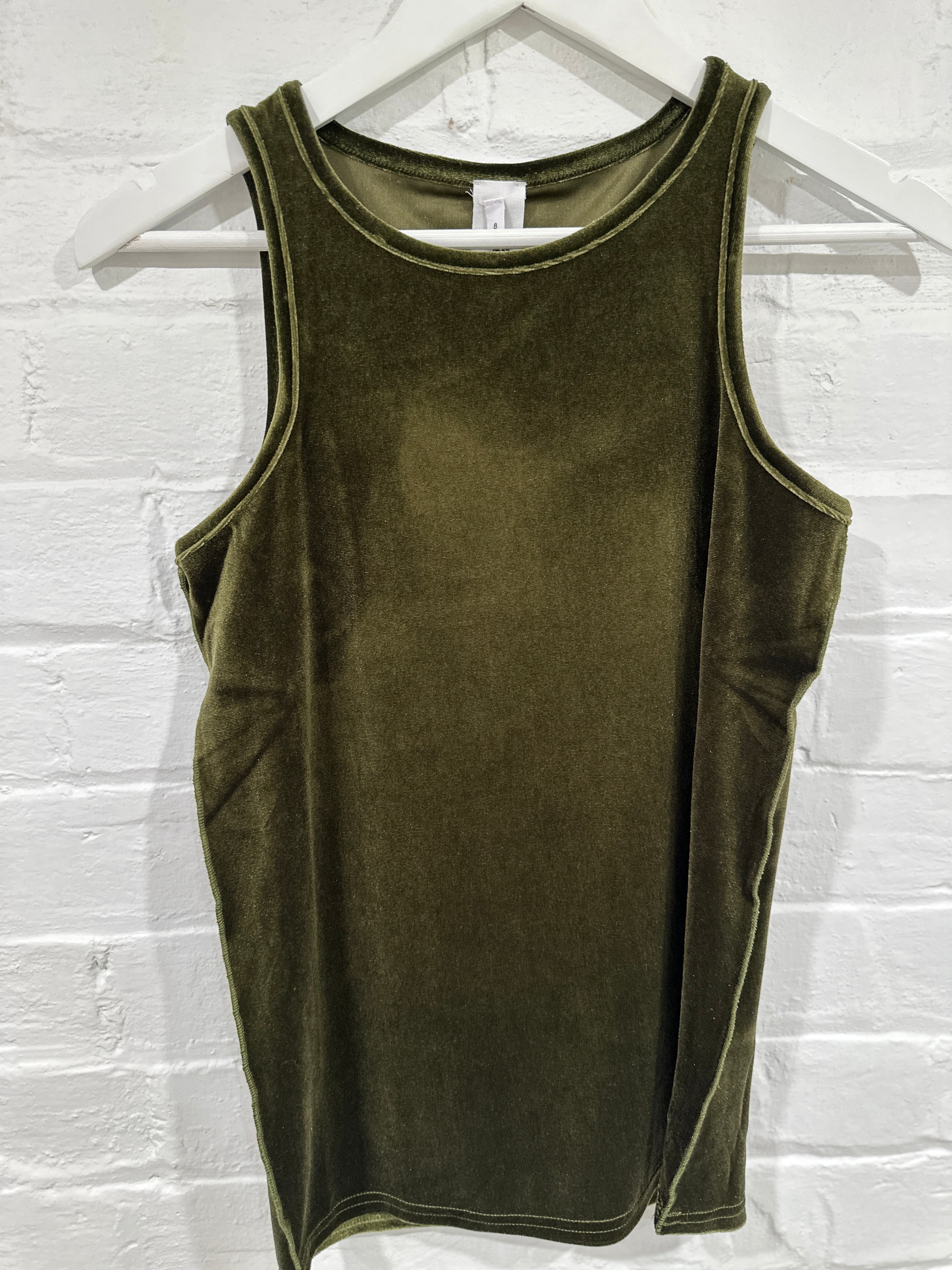 Elevate your wardrobe this season with the Tina Velvet Tank in Moss Green. Also available in Plum. Pairs back beautifully with M.A. Dainty Sturt Pants in Rich Brocade