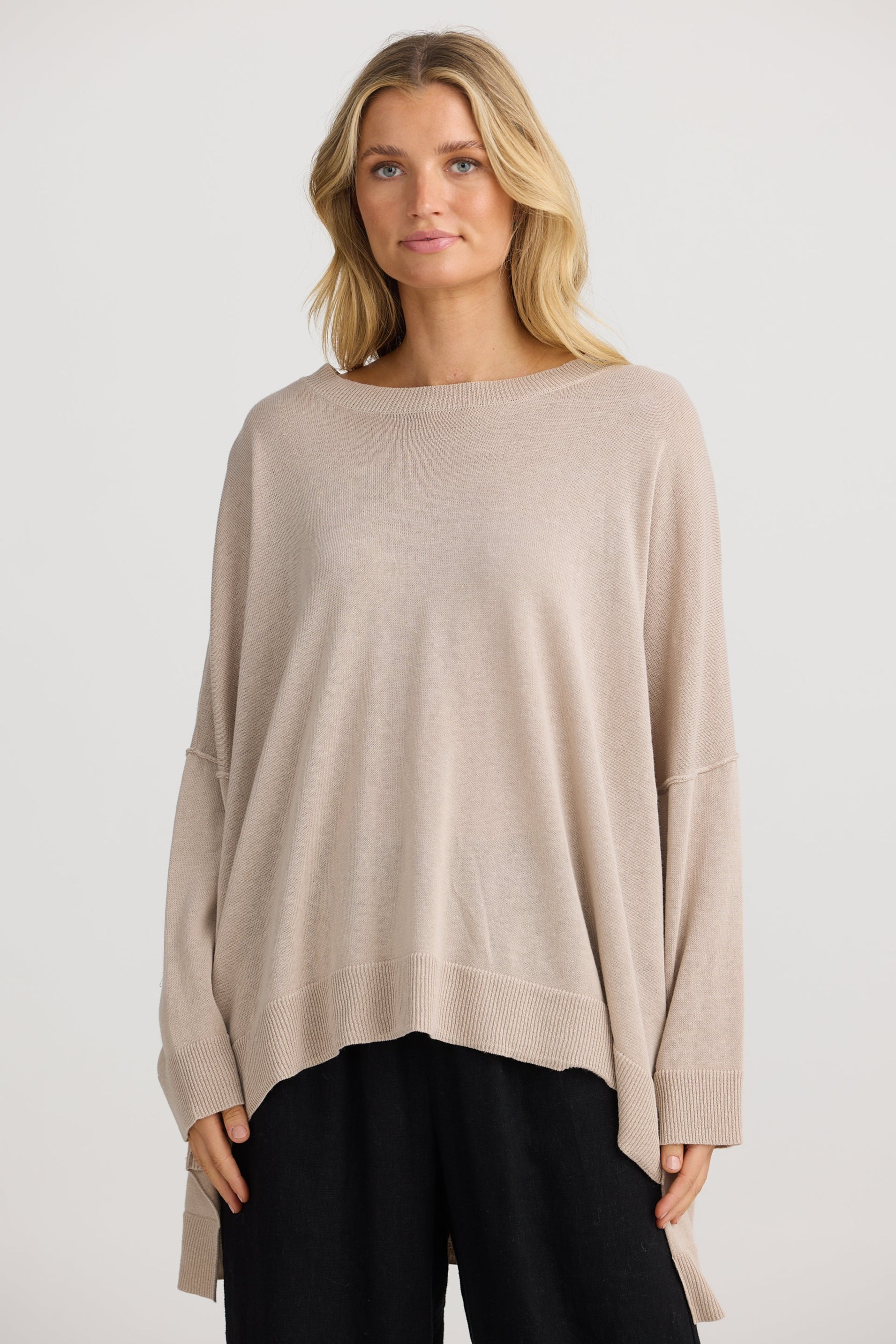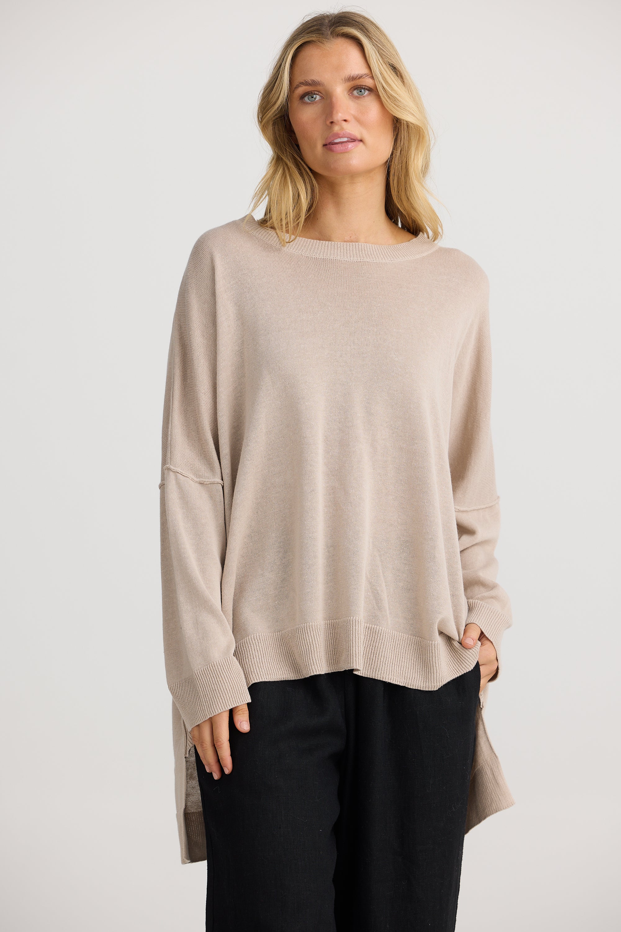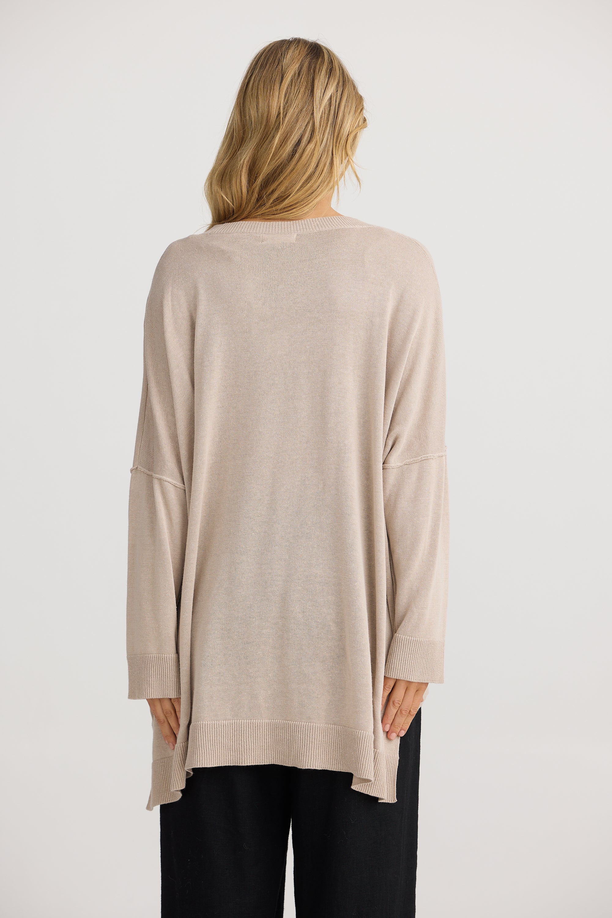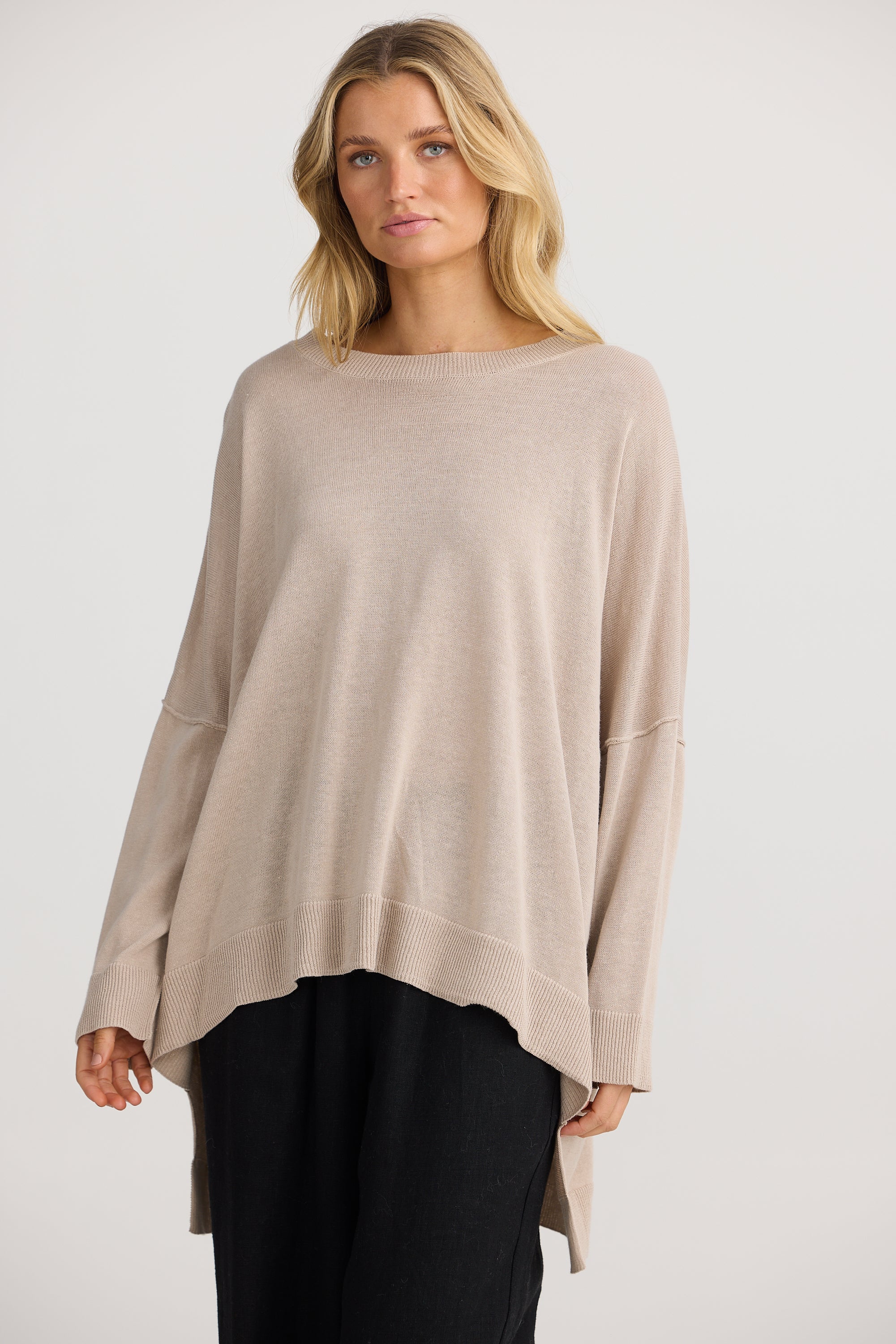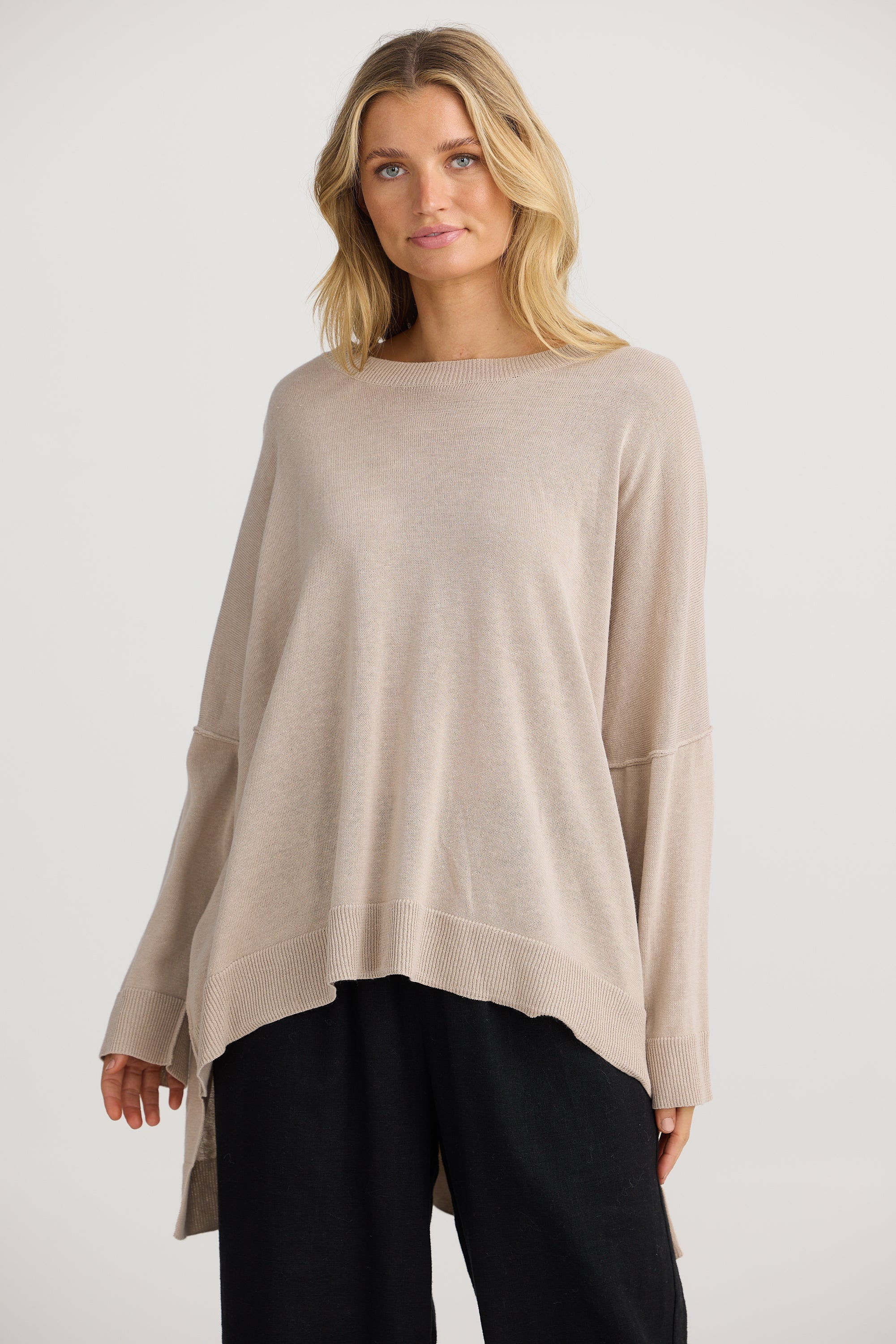 Introducing the Umbria Fine Knit, an elegant free size garment from The Shanty Corporation. This linen/cotton blend longline knit is very light on the body, and features quality fine rib detailing. It also has a round neckline, dropped shoulders, narrow sleeves and a high-low hemline. Relax in style in this stunning fine knit.