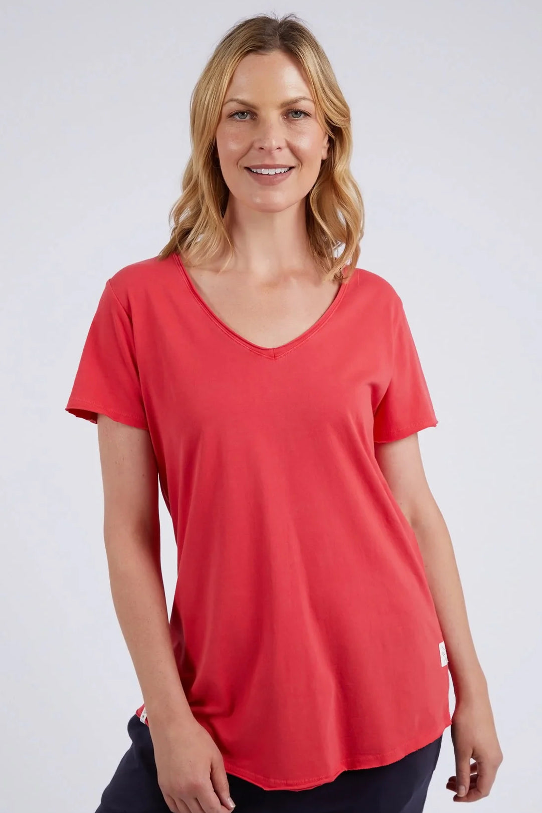 Perfect for pairing with all and layering, everybody need a classic cotton tee, the Fundamental Vee Tee from Elm is sure to do the trick! Coming in many different colours the choice is endless from the go-to's blacks, whites and the more adventurous pinks and blues. The cotton fabric carries slight stretch and the raw curved hem adds for a modern twist to the classic tee.