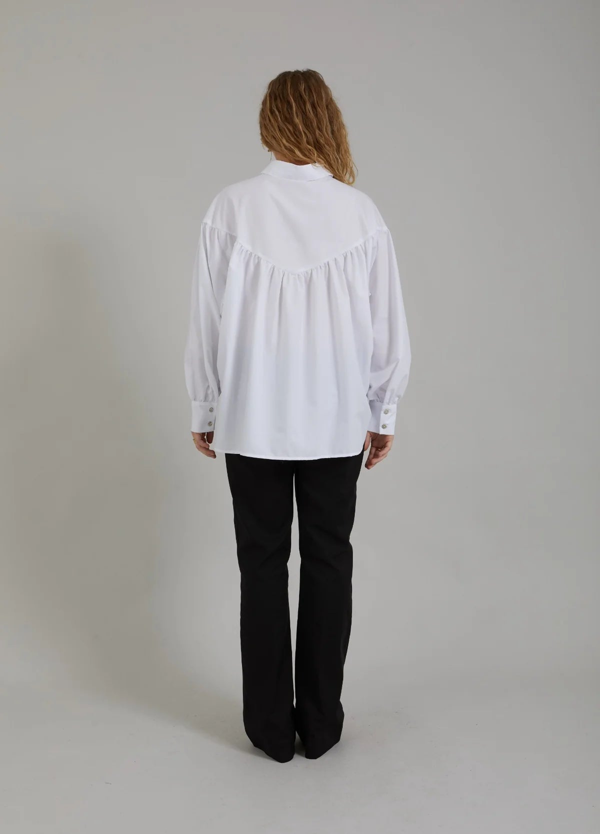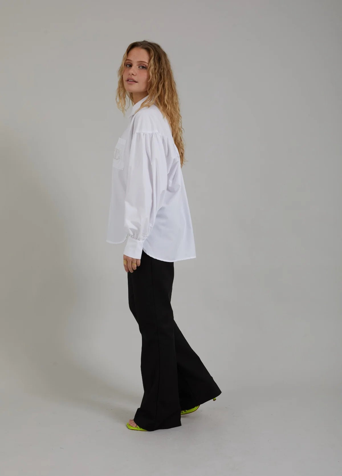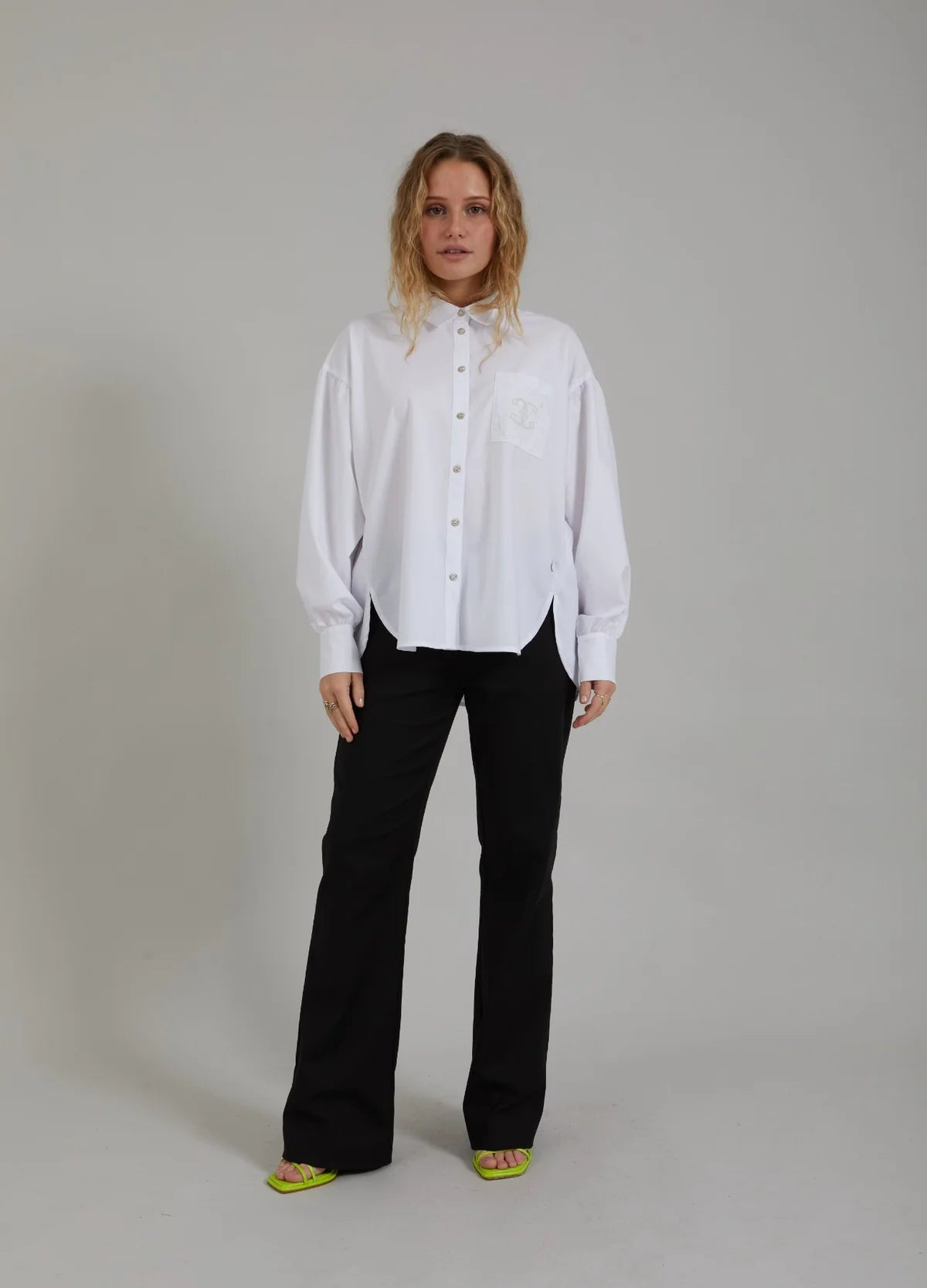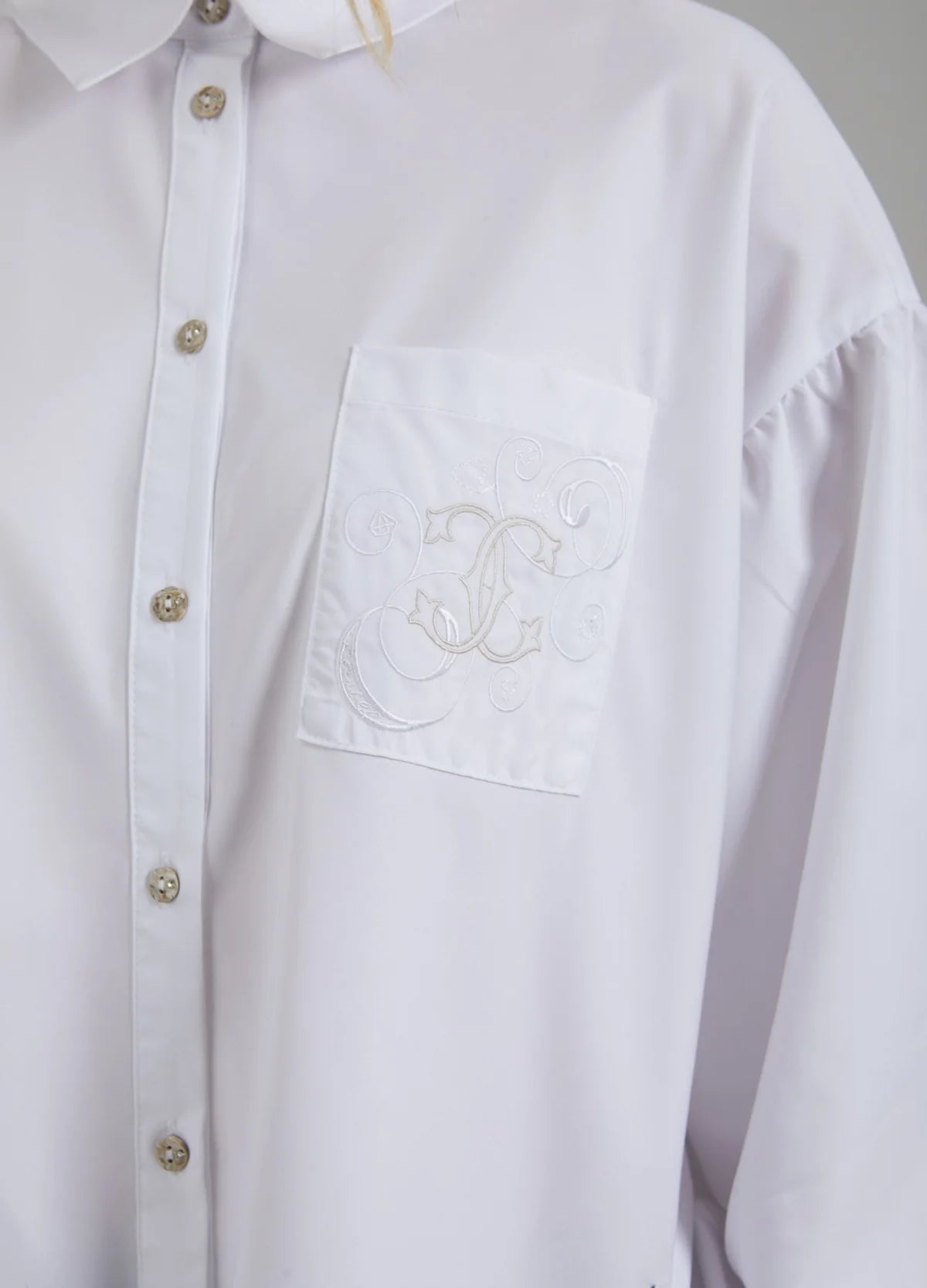 Shirt with classic collar and embroidered CC logo on chest pocket.