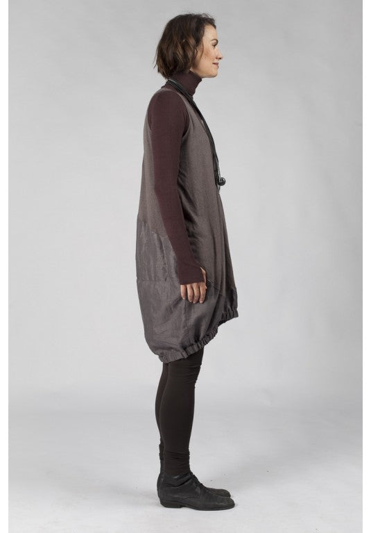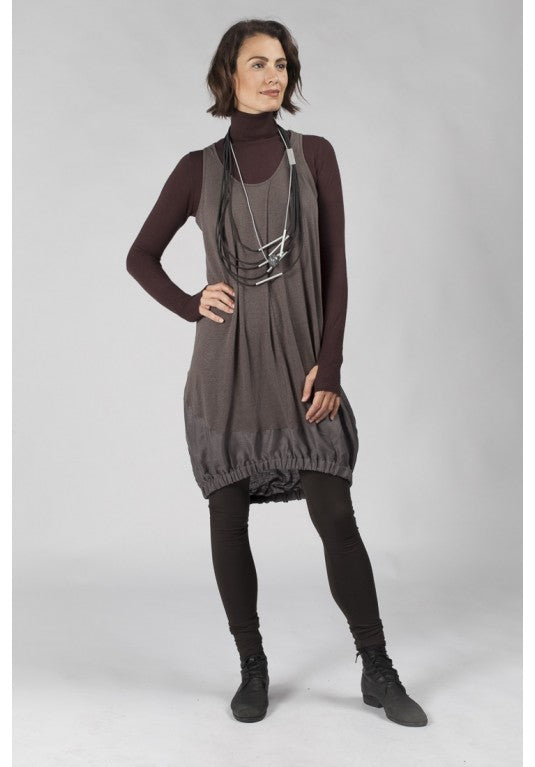 Woodland Tunic is a sleeveless, round neck tunic that has an elasticated hemline to create a unique and dimensional look, featuring a woven linen as contrast. This tunic is perfect for travelling as you can wear it ironed or crushed. Perfect for layering with a high neck and long-sleeve top underneath and a pair of ponte pants.