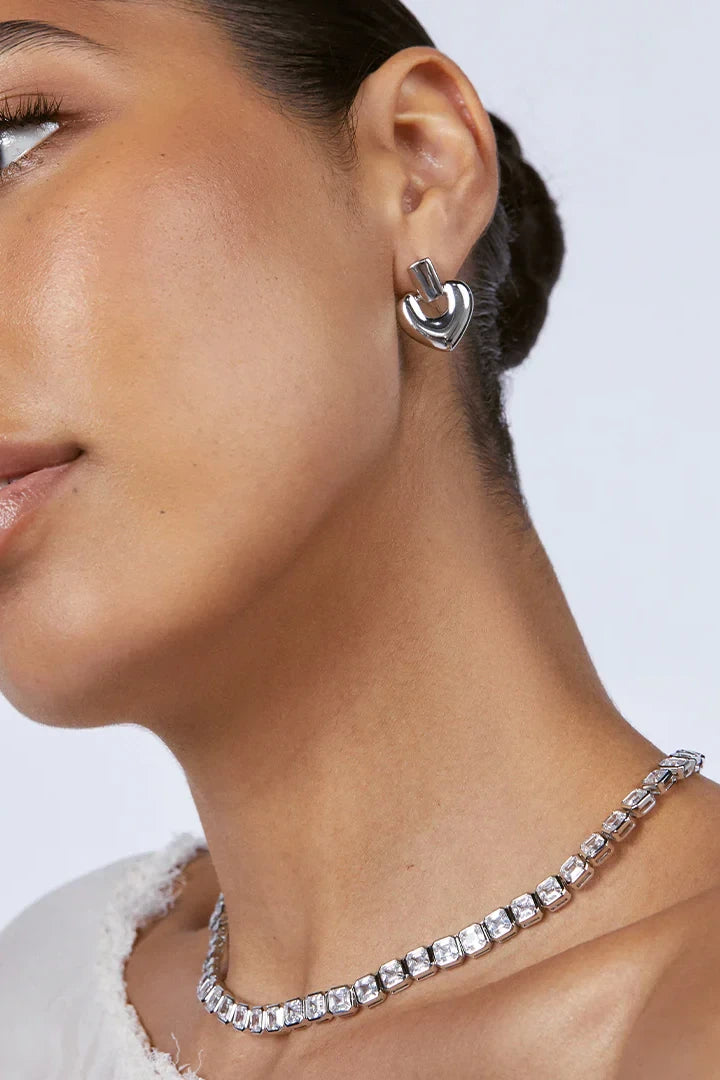 The Harmony Earrings by Zahar feature a contemporary heart design with a clean and elegant finish. They are versatile and suitable for both everyday wear and special