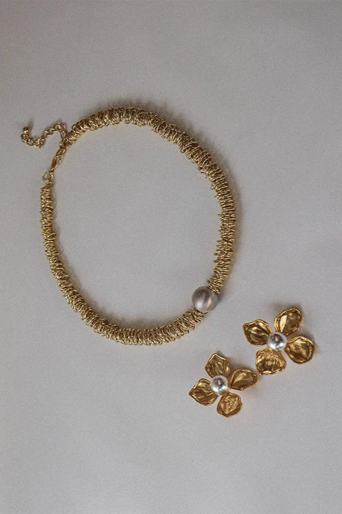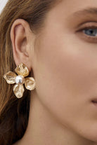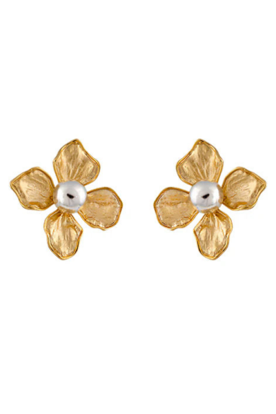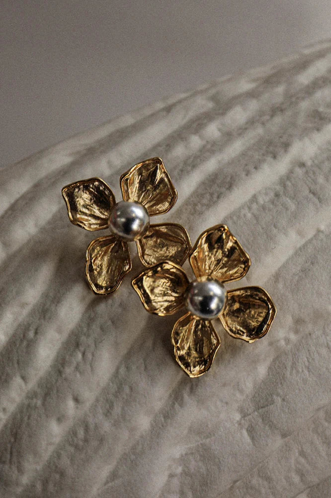 The Jane Earrings by Zahar feature a flower in 18ct gold plating with a rhodium plated ball in the centre.