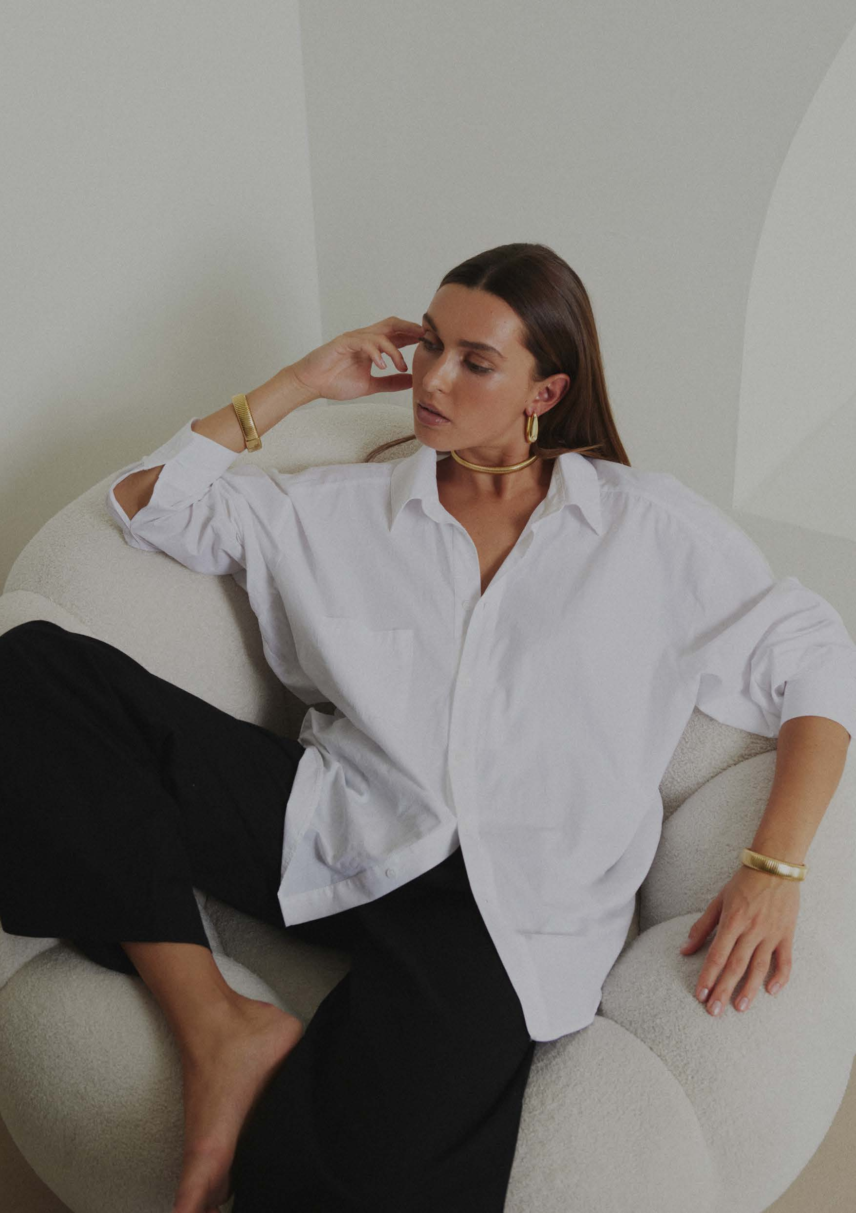 The Lauren Earrings by Zahar feature a high polish gold hoop design. The perfect statement for everyday wear.