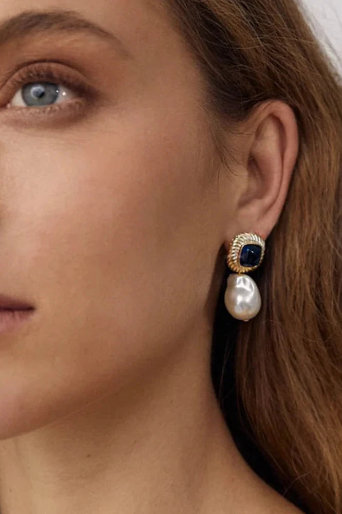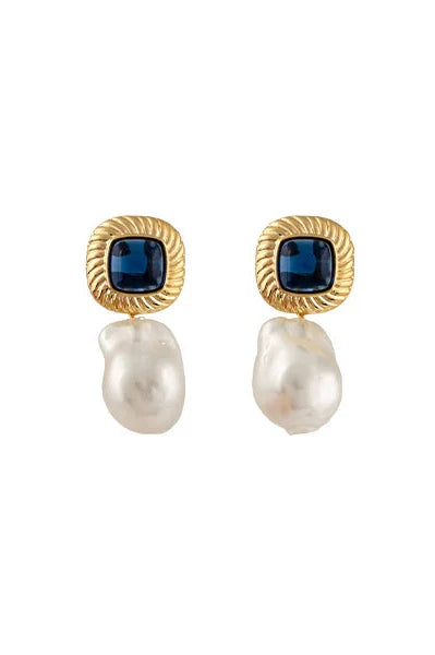 Sally Earrings with Blue Cabochons