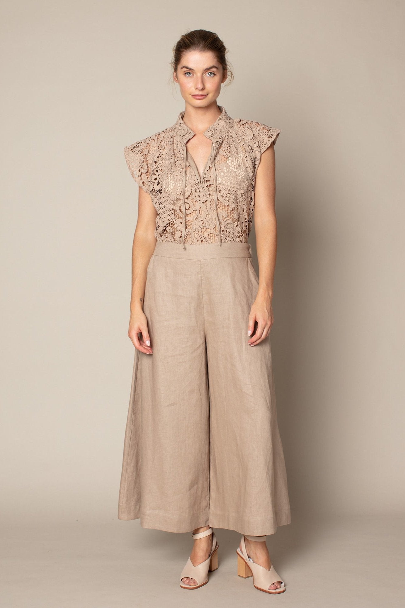 - Fluid and flattering wide leg pant