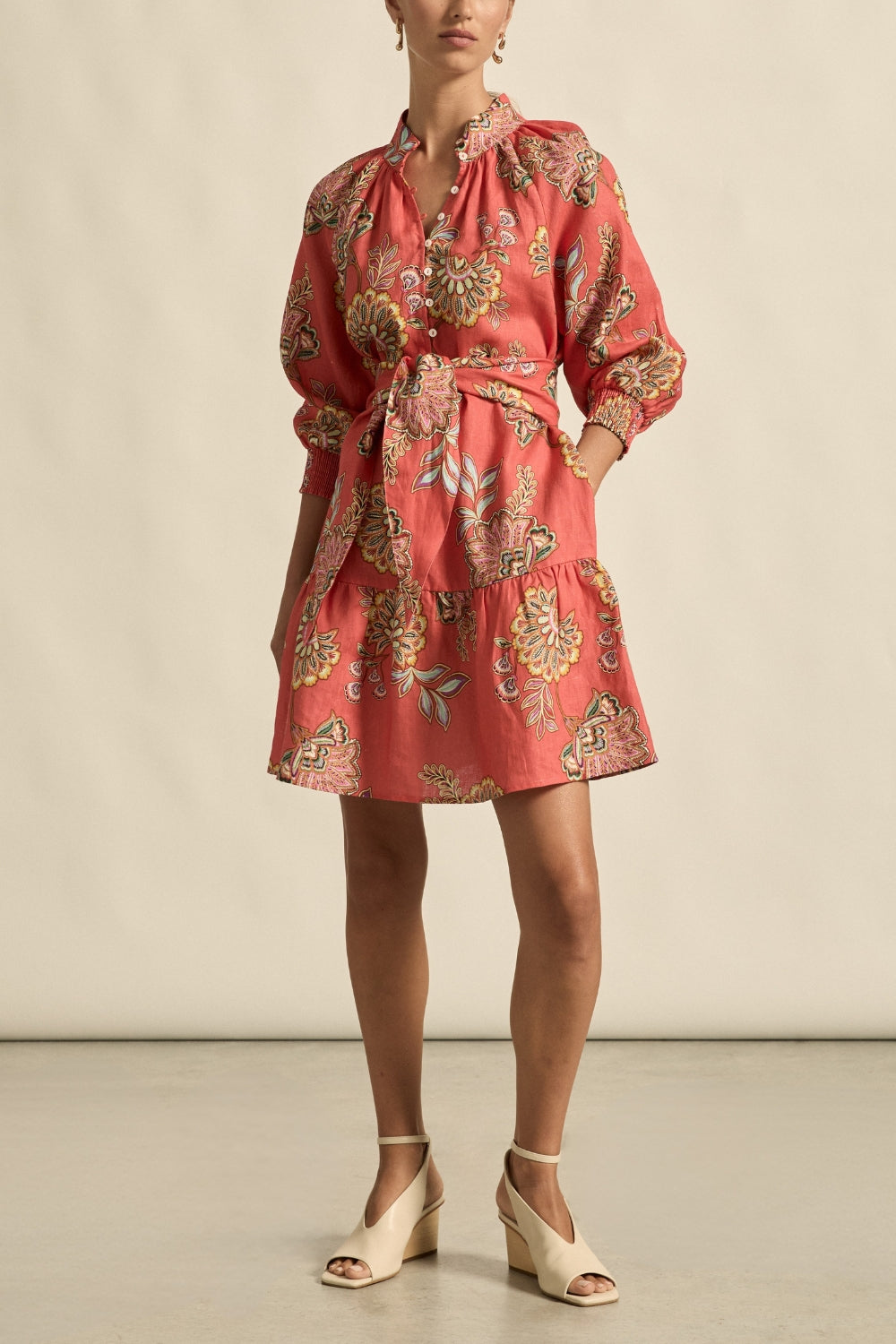 Light, effortless, and endlessly wearable, the Elated Dress is your go-to for refined everyday dressing. Crafted from 100% breathable linen, it blends feminine form with fluid movement, offering all-day comfort and trans-seasonal versatility. A high stand collar and soft ¾ sleeves create gentle structure, while elasticated cuffs and shell buttons add practical, thoughtful detail. The relaxed, off-the-body fit is balanced with a wide self-tie belt, allowing you to personalise the silhouette with ease. Ideal for everyday wear, travel, or elevated casual styling.