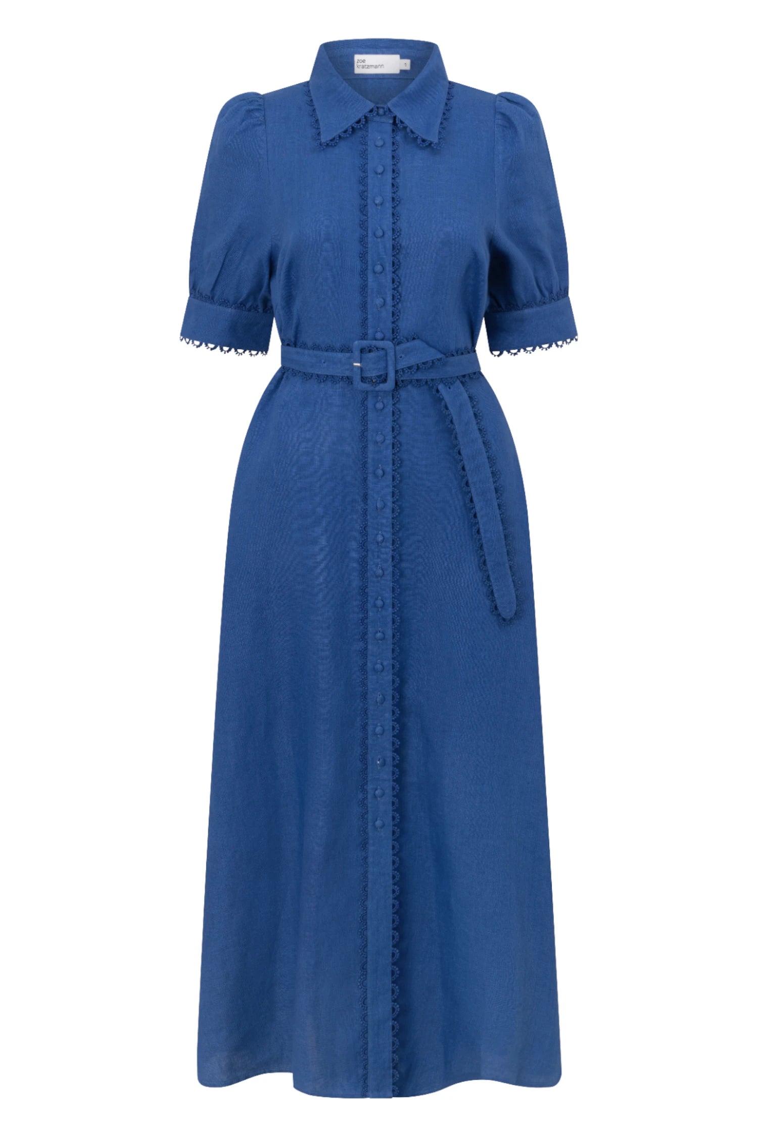 • scallop lace trim on collar, placket and cuffs