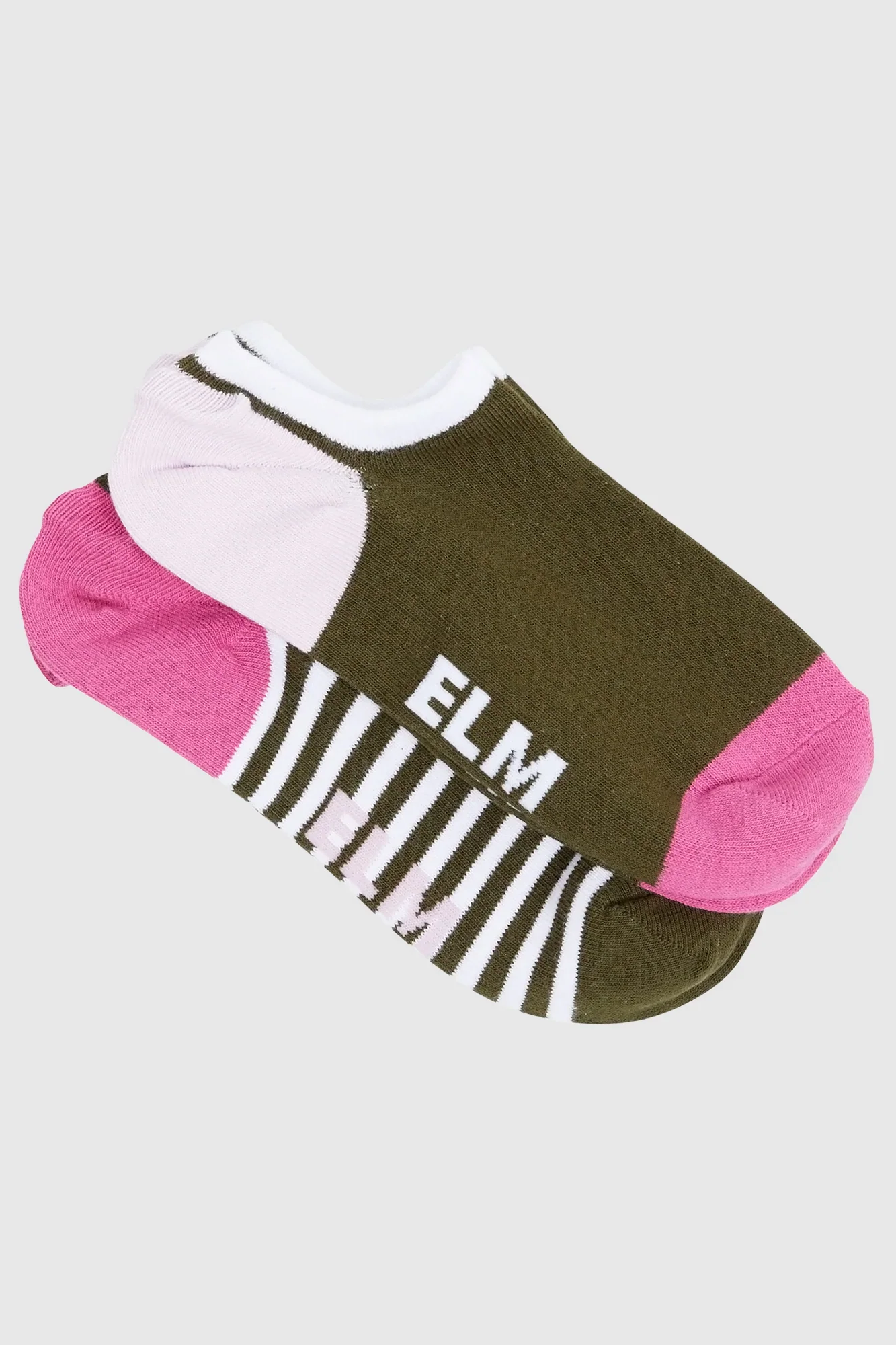 2 Pack No Show Socks in Gem Stripe & Green/Pink