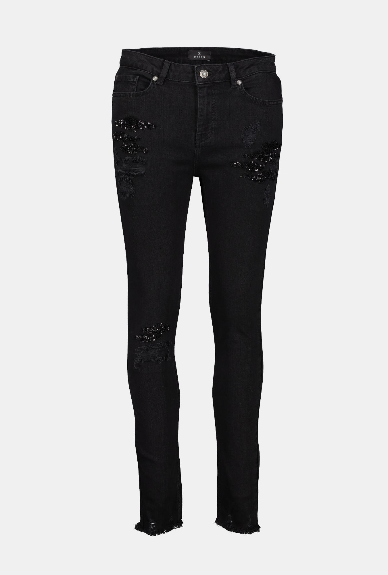 With the extravagant jeans from Monari you are guaranteed to attract everyone's attention. The denim model is characterised by a used look with tattered areas and glittering trimmings thanks to unique sequins. Bring even more variety to your trendy everyday outfit with the comfortably fitting trousers.