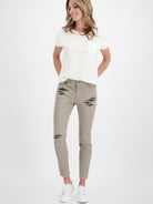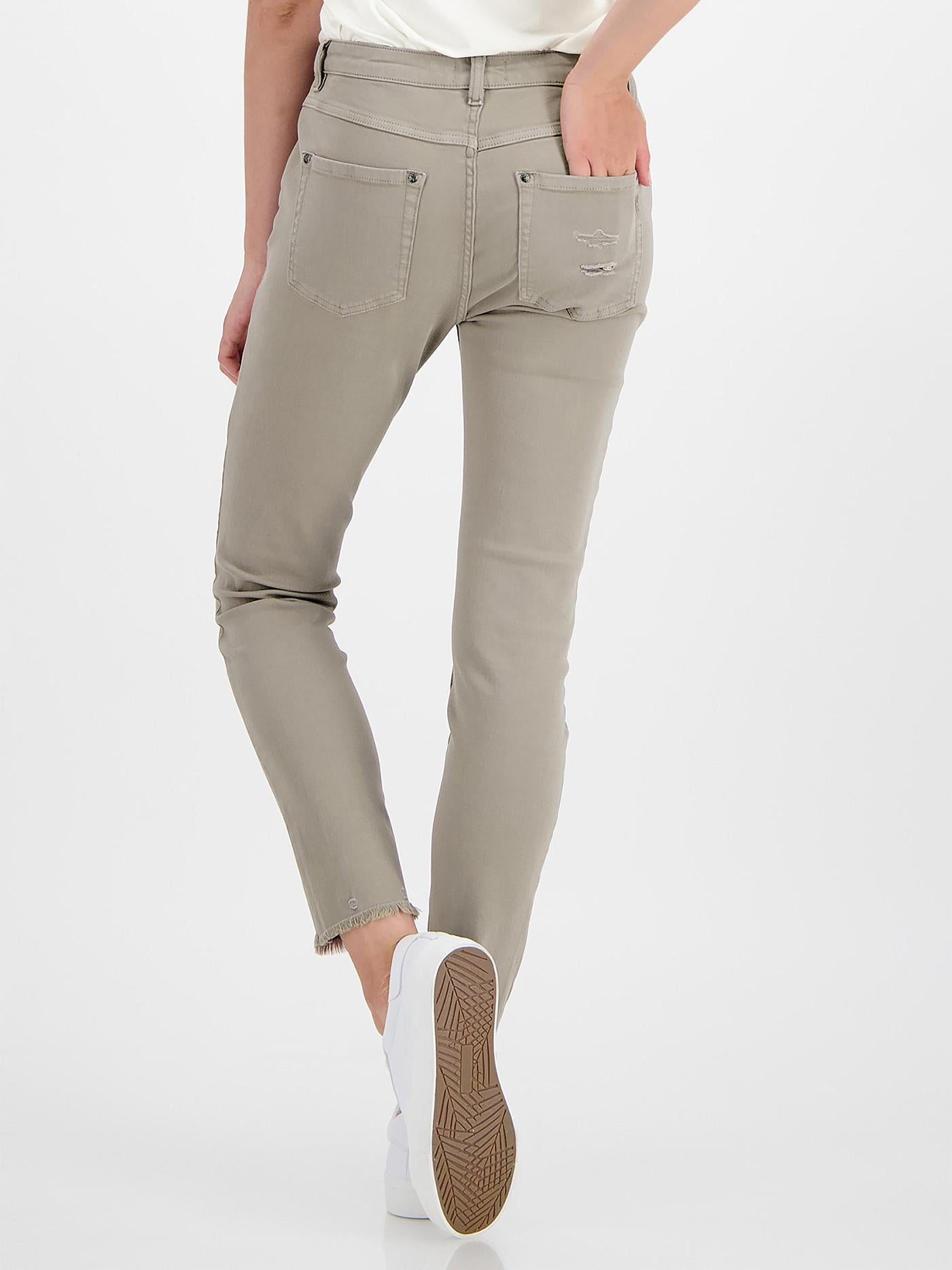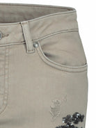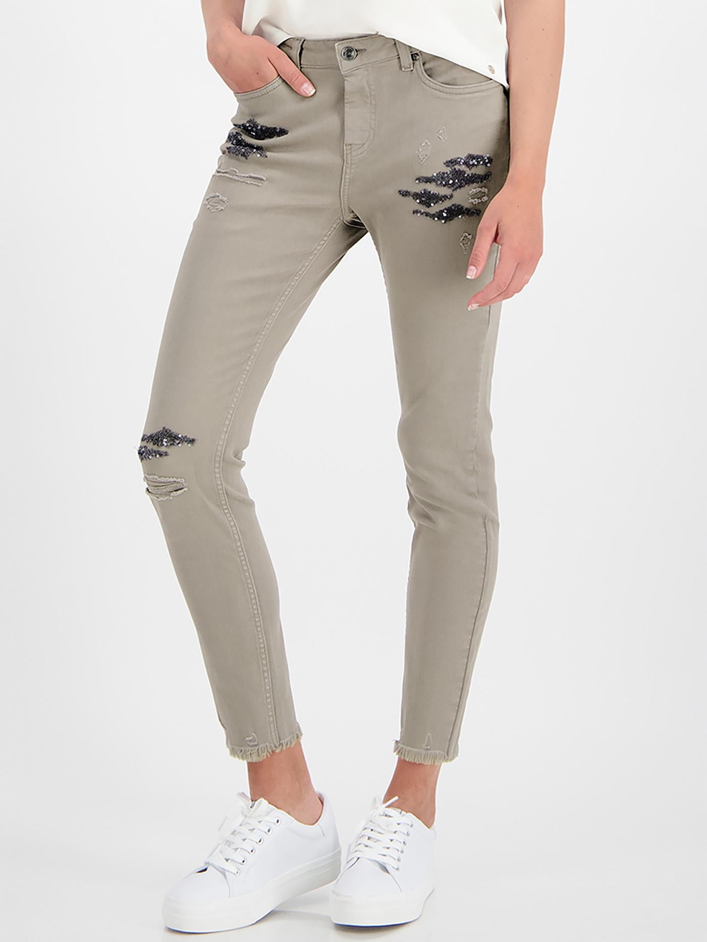 With the extravagant jeans from Monari you are guaranteed to attract everyone's attention. The denim model is characterised by a used look with tattered areas and glittering trimmings thanks to unique sequins. Bring even more variety to your trendy everyday outfit with the comfortably fitting trousers.