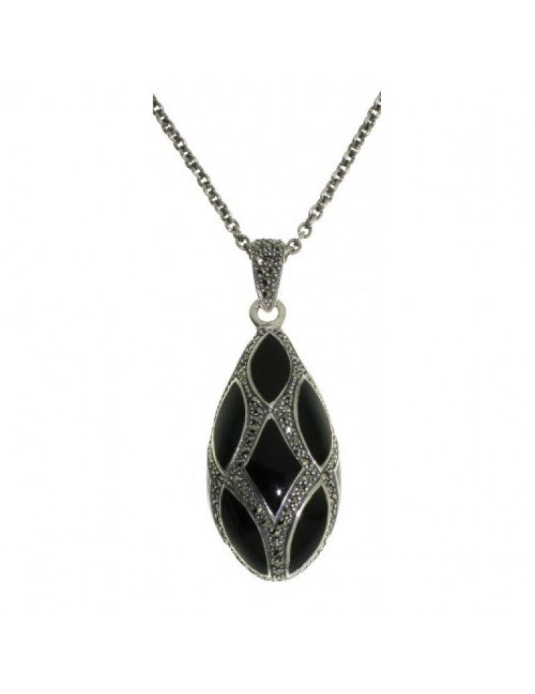 Sterling silver necklace with black enamel and marcasite pendant with necklace.
