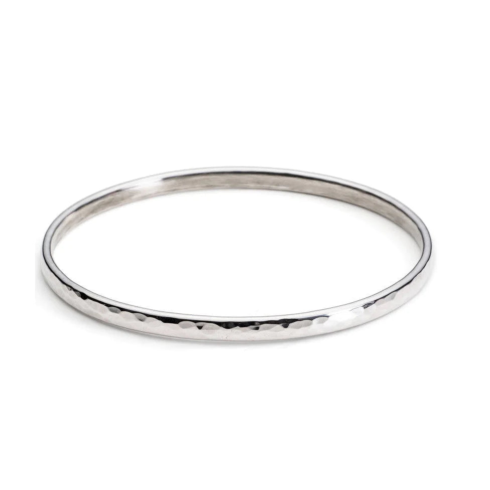 925 Silver Beaten Bangle 7mm wide Round Bangle