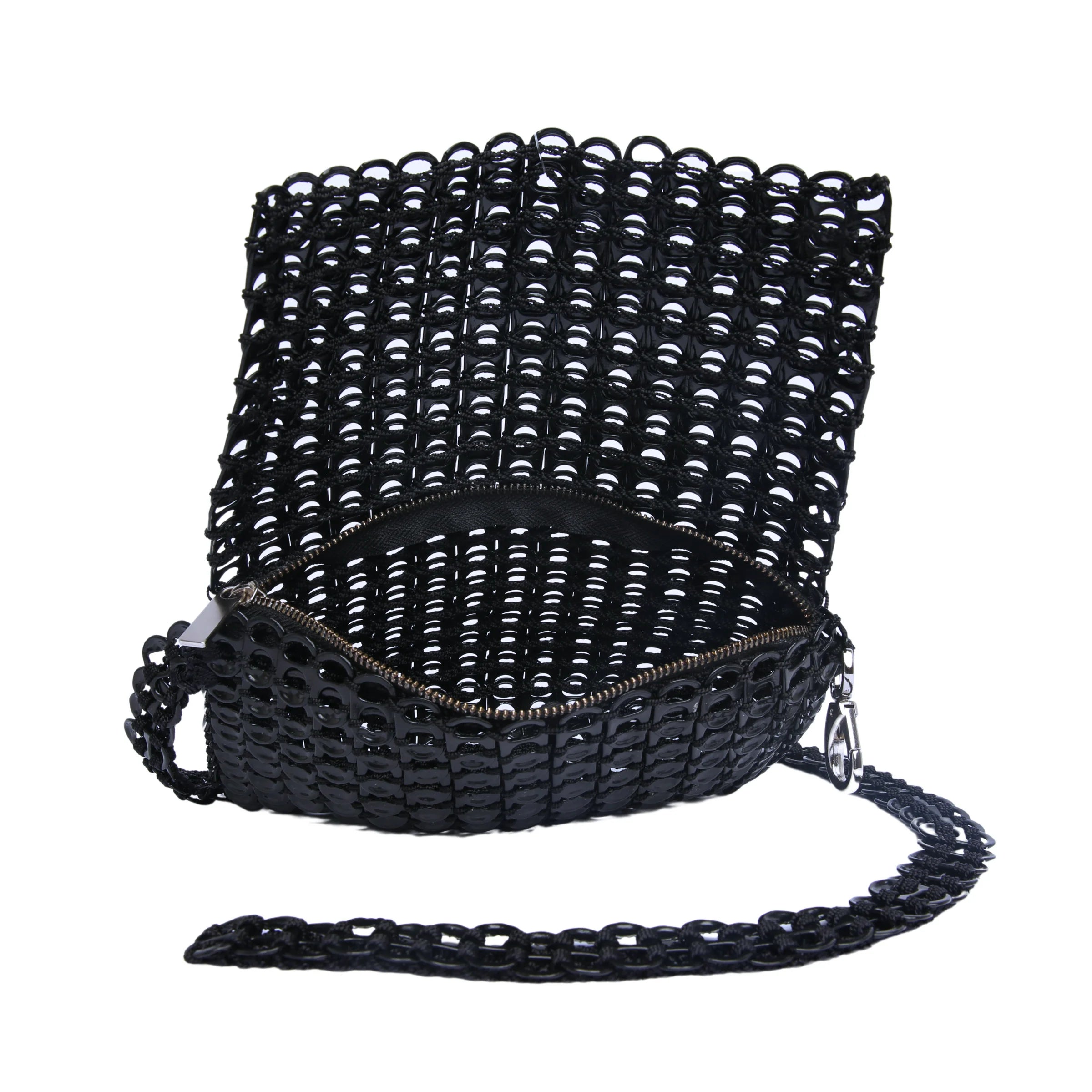The manufacturing process of our bags start with the recycling and cleaning of the aluminum pull tabs, which is our main material. The pull tabs are sewed back together to create our Bags, which are extremely strong and will last a lifetime.