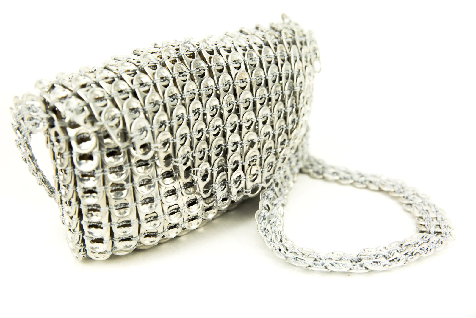 The manufacturing process of our bags start with the recycling and cleaning of the aluminum pull tabs, which is our main material. The pull tabs are sewed back together to create our Bags, which are extremely strong and will last a lifetime.