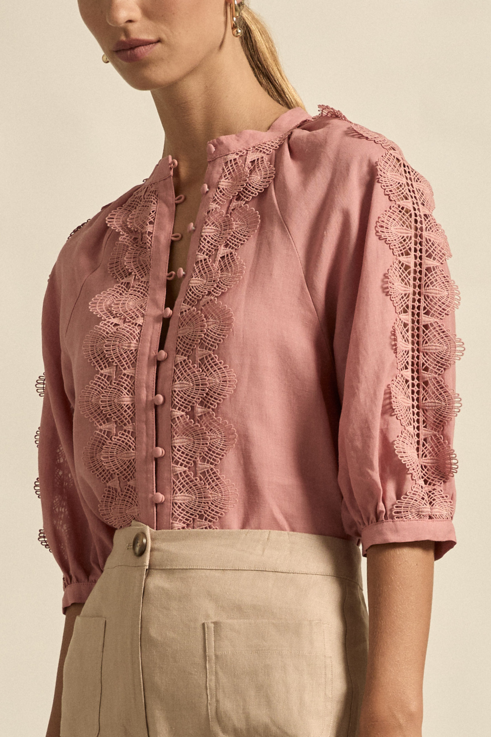 A romantic composition of texture and detail, the bouquet top is a celebration of lace. Delicate trim and relaxed proportions ensure wearability across seasons.
