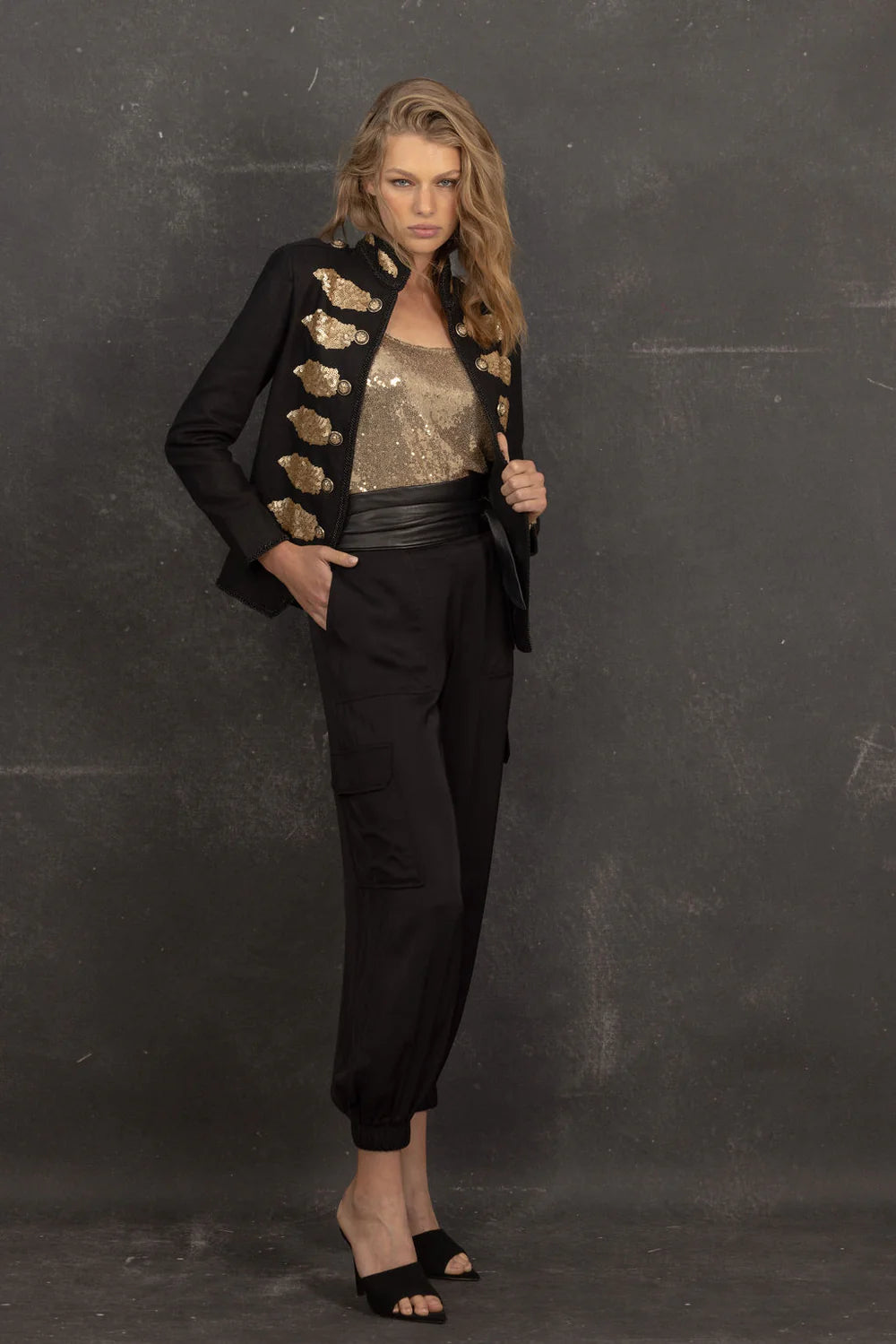The 7/8th length looks great with heels or trainers. The fabric is soft and comfortable. Perfect for travelling and paired back with the French Trench.