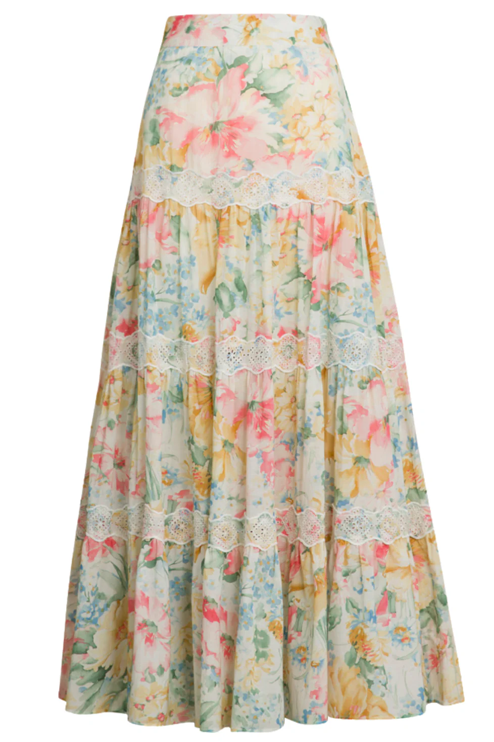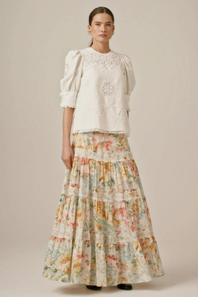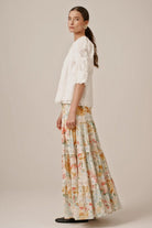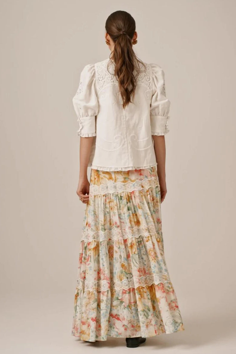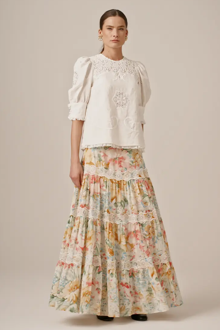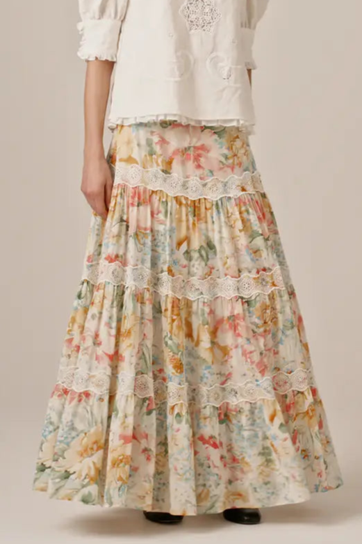 The Cotton Slub Skirt is cut in our light and soft FSC certified cotton & viscose quality, with slub detailing in the fabric. It has a maxi length, fitted waistline and voluminous, flowy silhouette. The skirt is tiered and has beautiful broderie anglaise inserts. It closes in the side with a zipper.